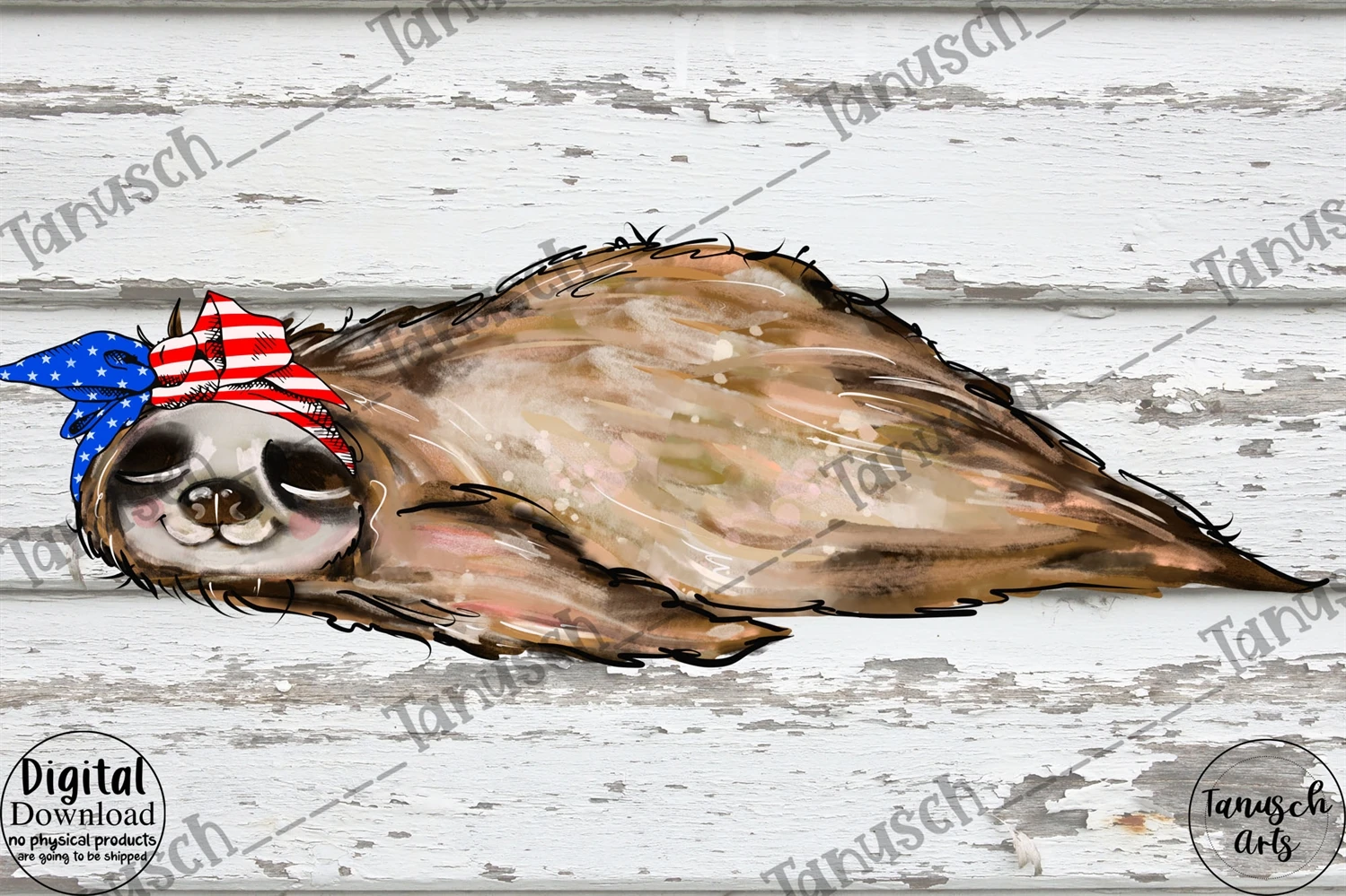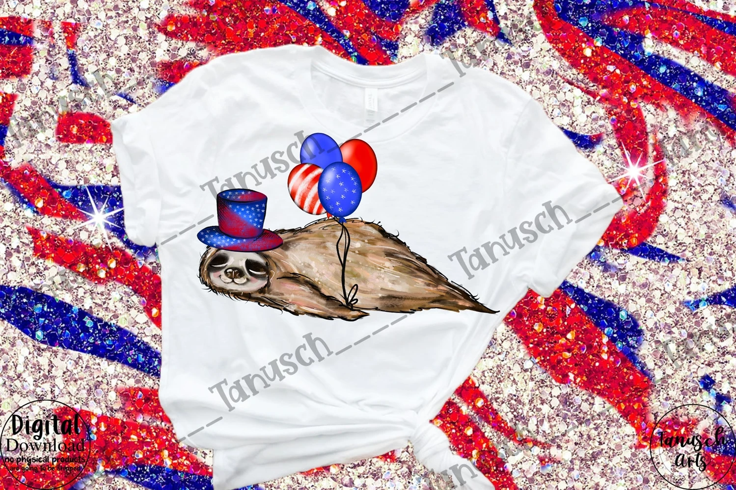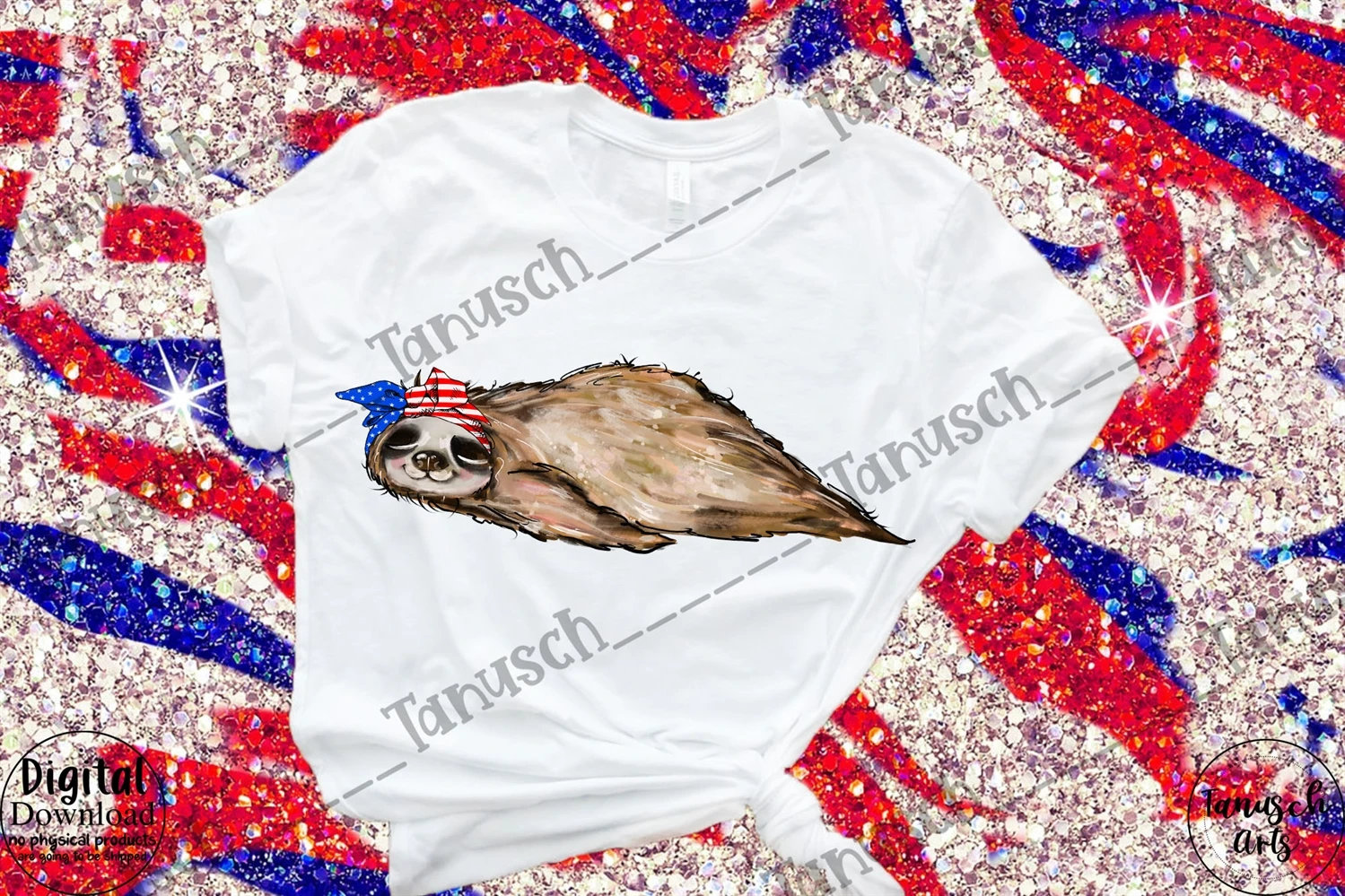 Hand painted cute Watercolor cute 4th of July Sloth Sublimation