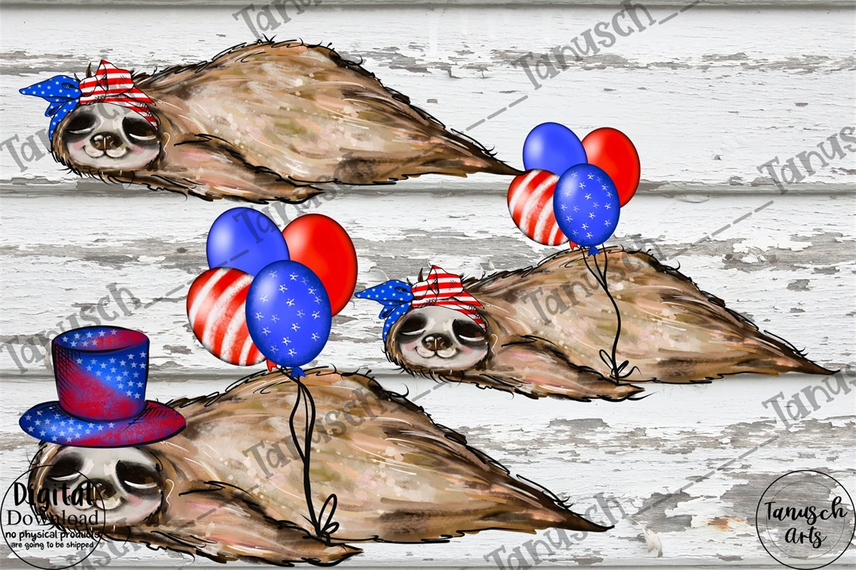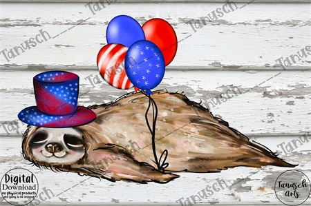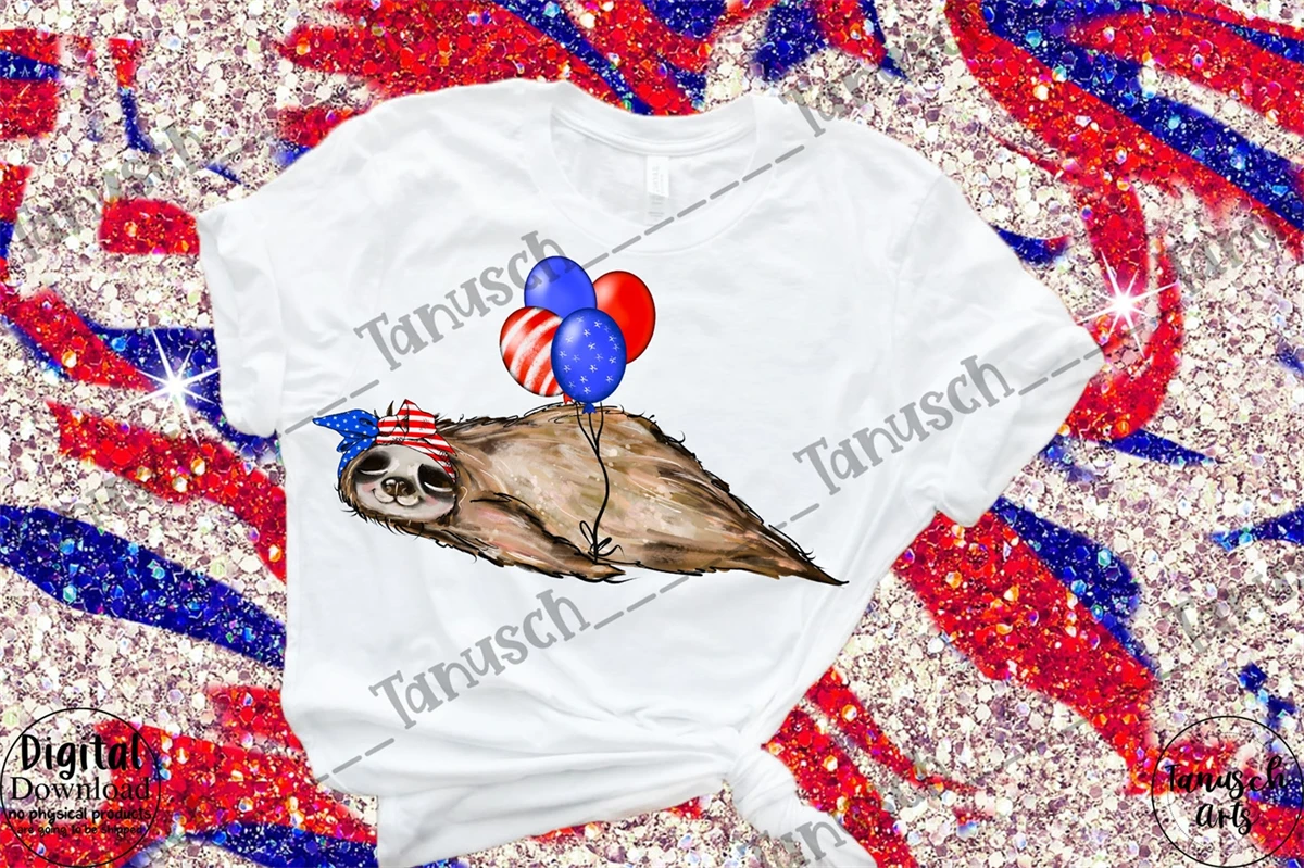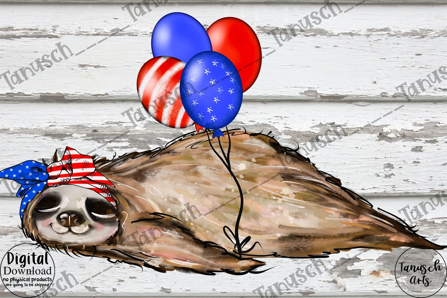 Hand painted cute Watercolor cute 4th of July Sloth Sublimation