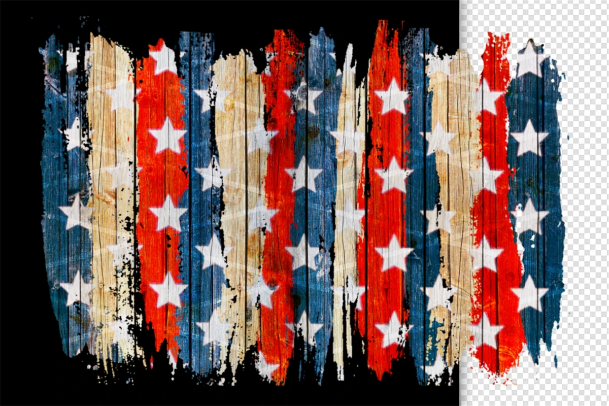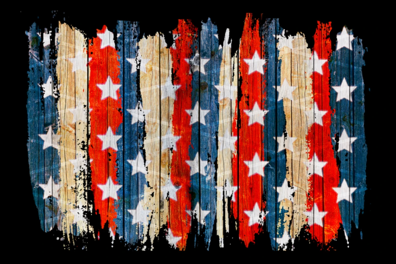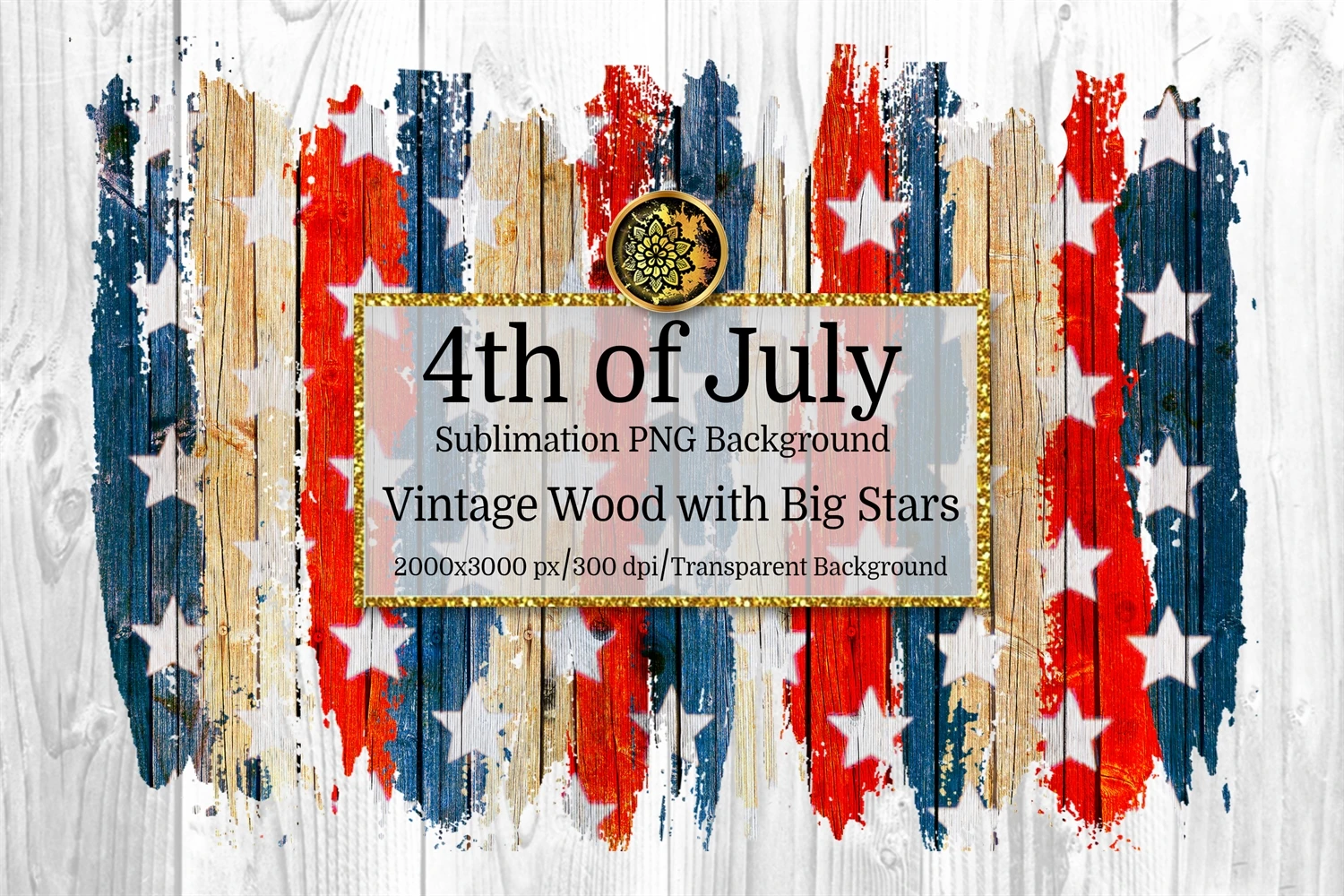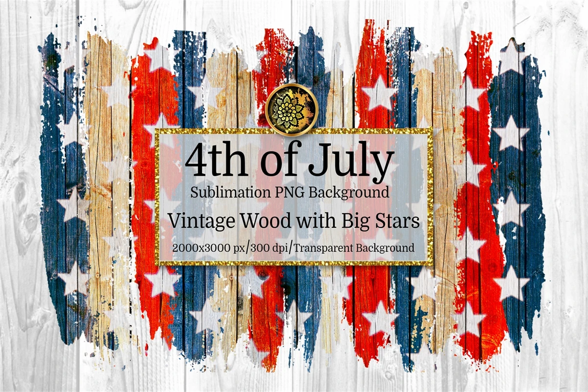 Independence Day, 4th of July, US flag Theme with Vintage Style Wood Texture White / Red / Blue Stroke with big white stars Sublimation PNG Background.