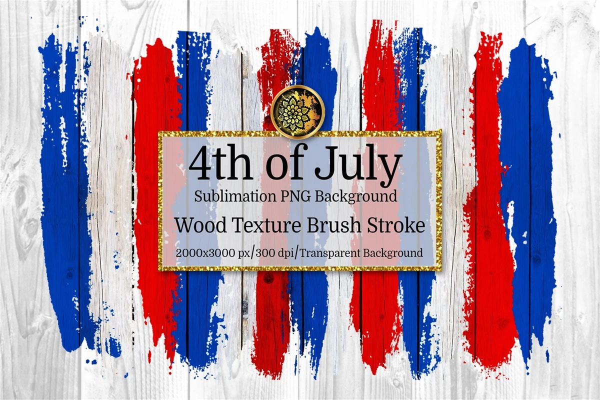 Independence Day, 4th of July, US flag Theme with Wood Texture White / Red / Blue Stroke Sublimation PNG Background.