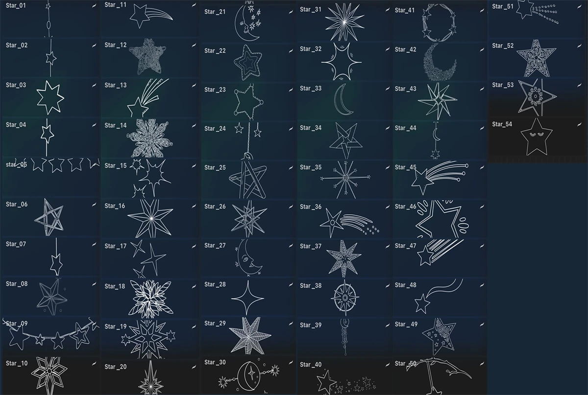 54 STARs STAMPS BRUSHEs FOR PROCREATE