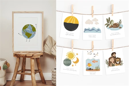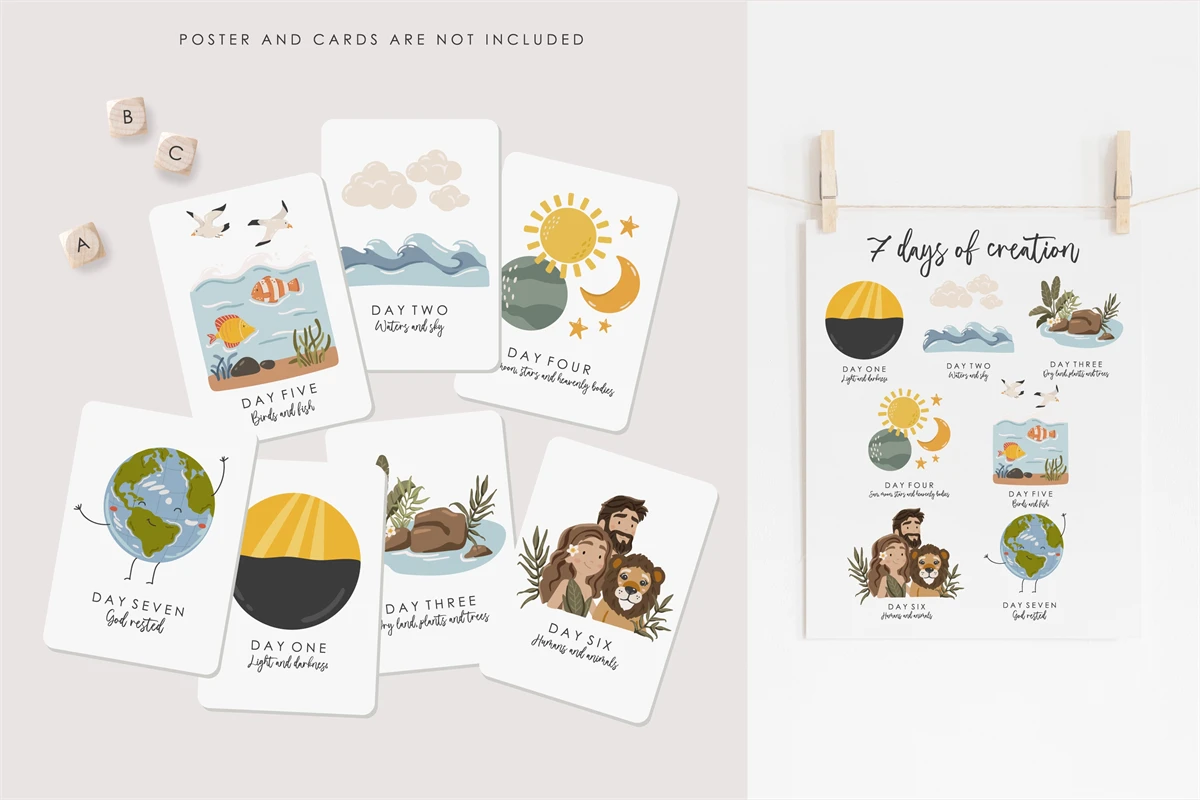 7 Days of Creation clipart, Kids christian clipart, Educational bible illustration, Creation clipart PNG, Sunday School PNG items