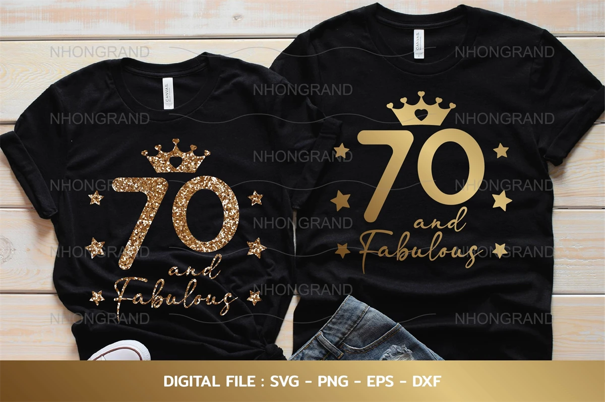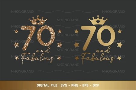 70th birthday and fabulous with heart crown golden gradient and glitter shirt cutie anniversary, Cricut Files, svg, png, eps, dxf, Download