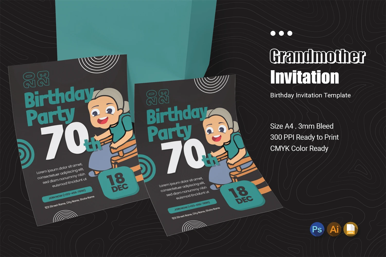 Of course you want to invite friends to your birthday party with the best invitations! Impress the invited guests with your style of invitation, by using this invitation card template. You can easily edit & customize each of the designs because every component is well organized and editable.