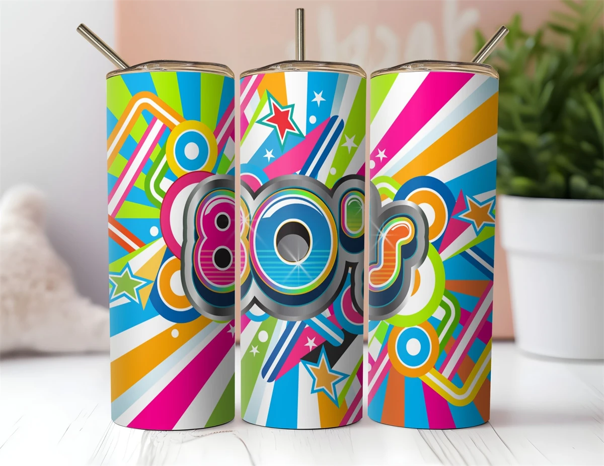 80's Party Tumbler Wrap, 20oz Skinny Tumbler Wrap