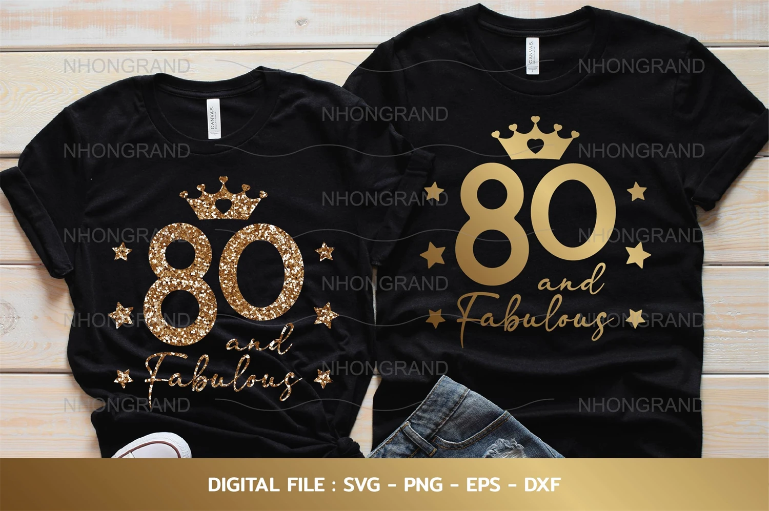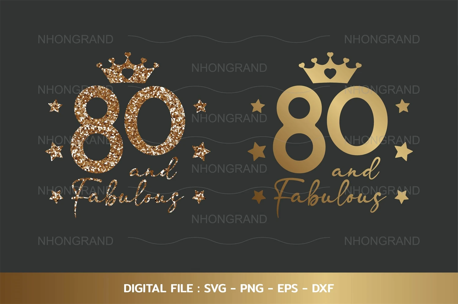 80th birthday and fabulous with heart crown golden gradient and glitter shirt cutie anniversary, Cricut Files, svg, png, eps, dxf, Download