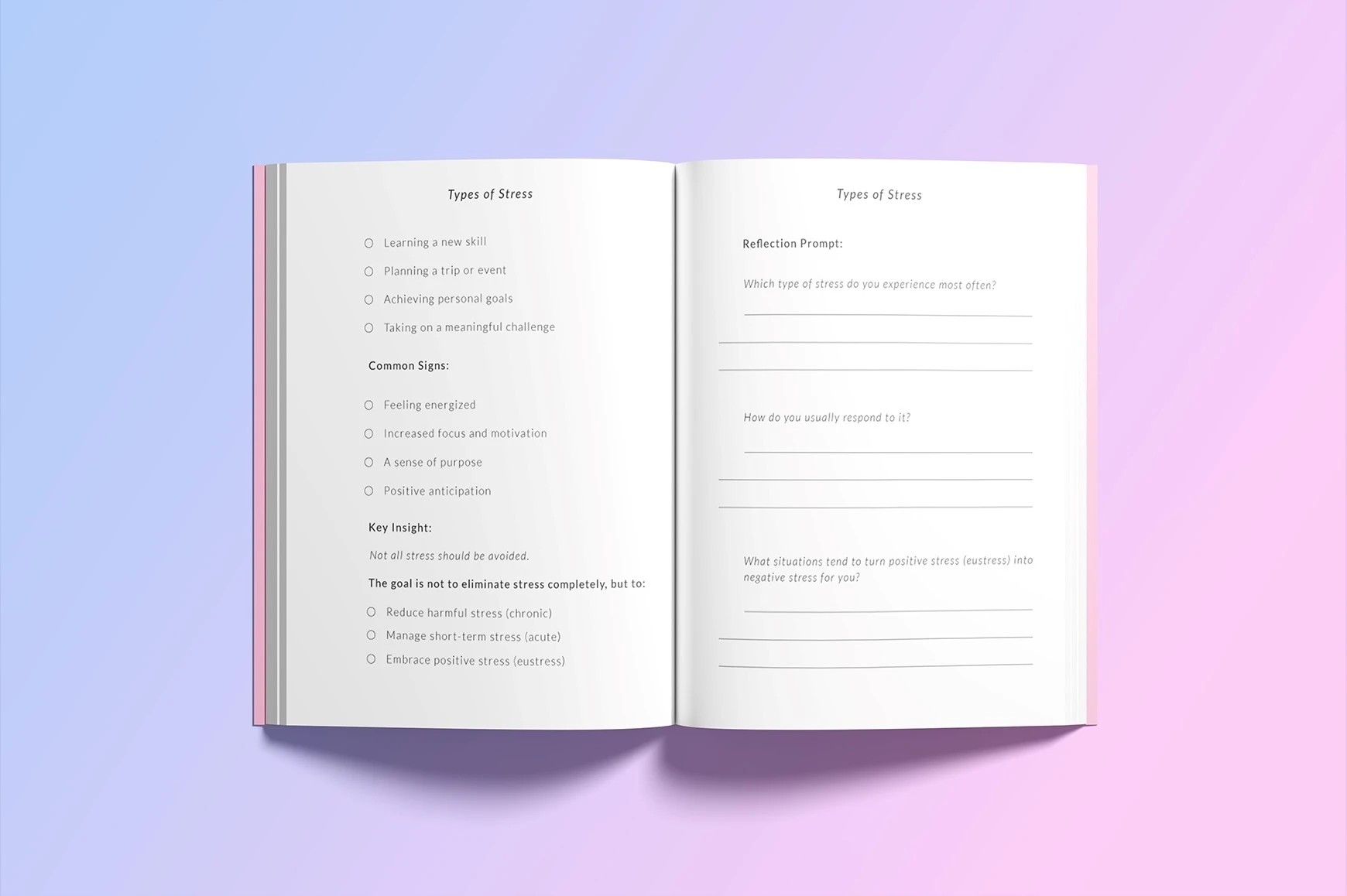 This professionally designed workbook combines stress management, anxiety tracking, and mood monitoring into one complete system helping you build awareness, develop healthier habits, and improve emotional balance over time.