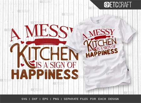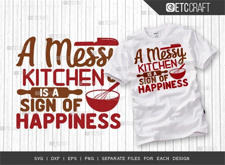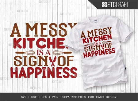 Embrace the beauty of imperfection and spread positivity with our "A Messy Kitchen Is A Sign Of Happiness" SVG Bundle!