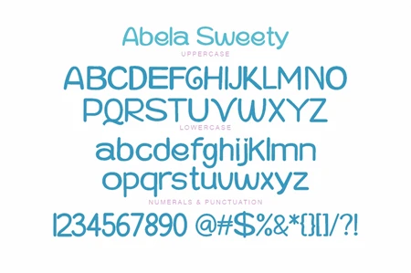 Abela Sweety is a monoline comic display font, a very unique trendy font with a combination of modern character bindings, and in my opinion this product suits the teaser display theme in every headline design, business cards, leaflets, magazines, children's events and brand screen printing.