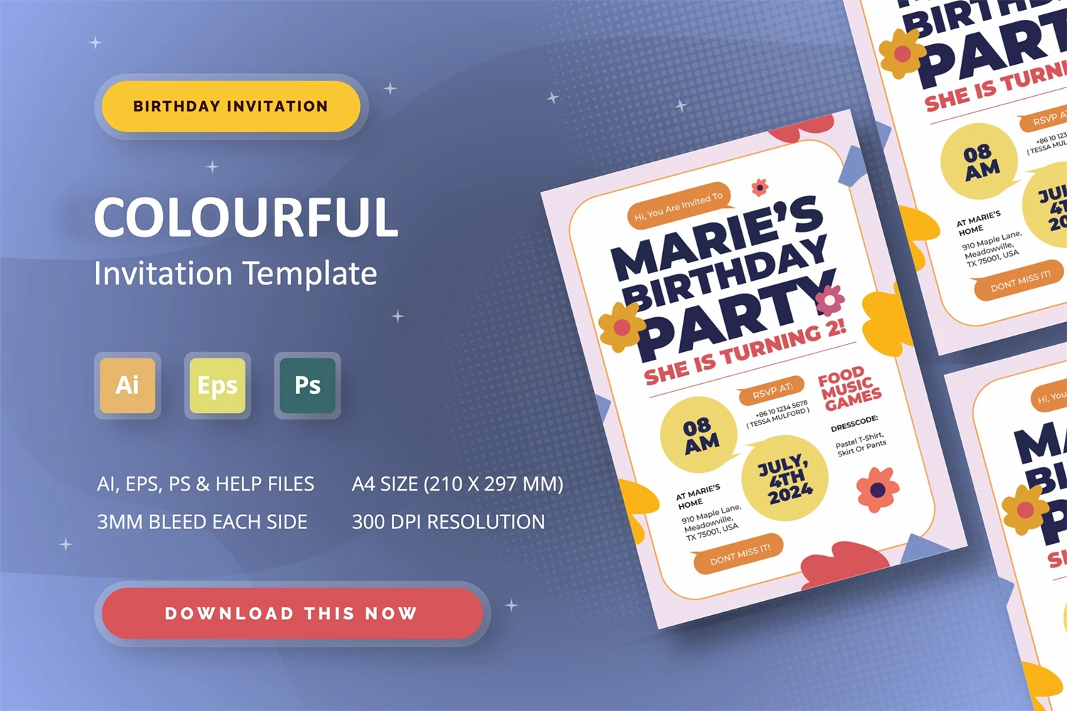 Abstrac Colourful - Birthday Invitation Use this Invitation Template to celebrate special moments like baby showers, weddings, birthdays, parties, and graduations. You can easily edit the text and change the colors to suit your preferences!