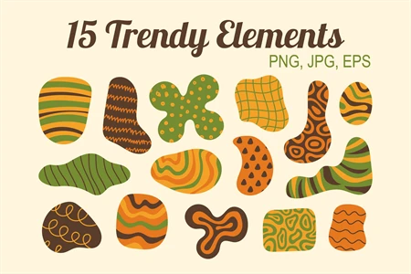 Creative wavy abstract design elements. Hand drawn artistic organic shapes. Trendy cartoon design icons for social media, posters, cards. Minimal geometric style liquid and fluid flat blobs and spots.