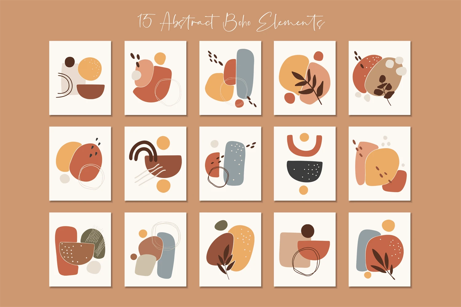 Abstract shapes clipart, Boho abstract elements, Digital boho clipart