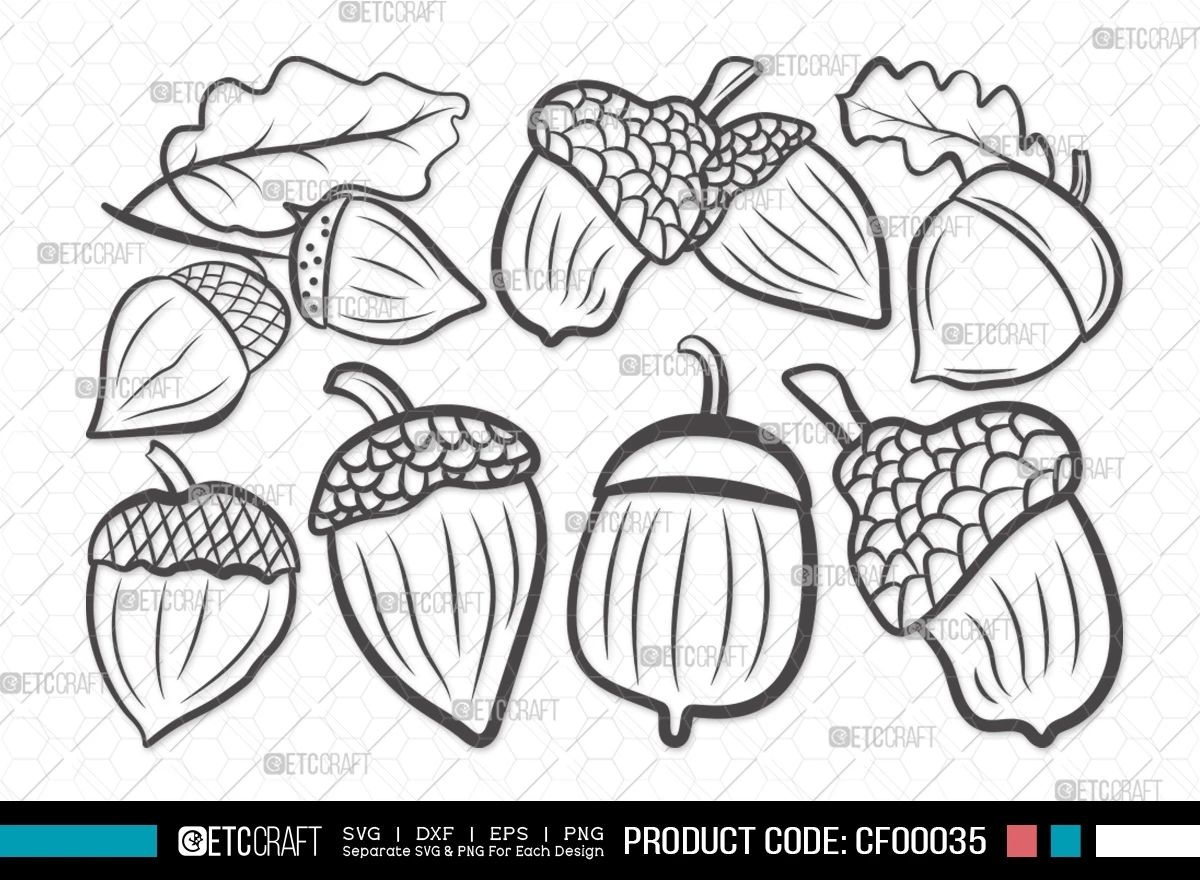 Immerse yourself in the beauty of autumn with our Acorn Outline Autumn Fruit Oak Nut SVG Cut File Bundle – a digital collection that perfectly encapsulates the essence of the season, adding a touch of natural elegance to your creative projects.