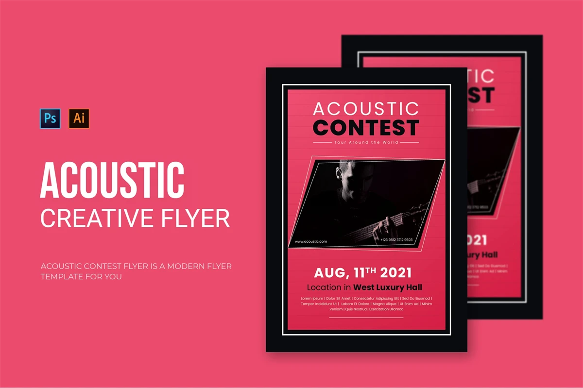 Acoustic Contest - Flyer. This Flyer template is designed for your company's business needs. very clean and elegant, and also easily edited and adjusted to your liking
