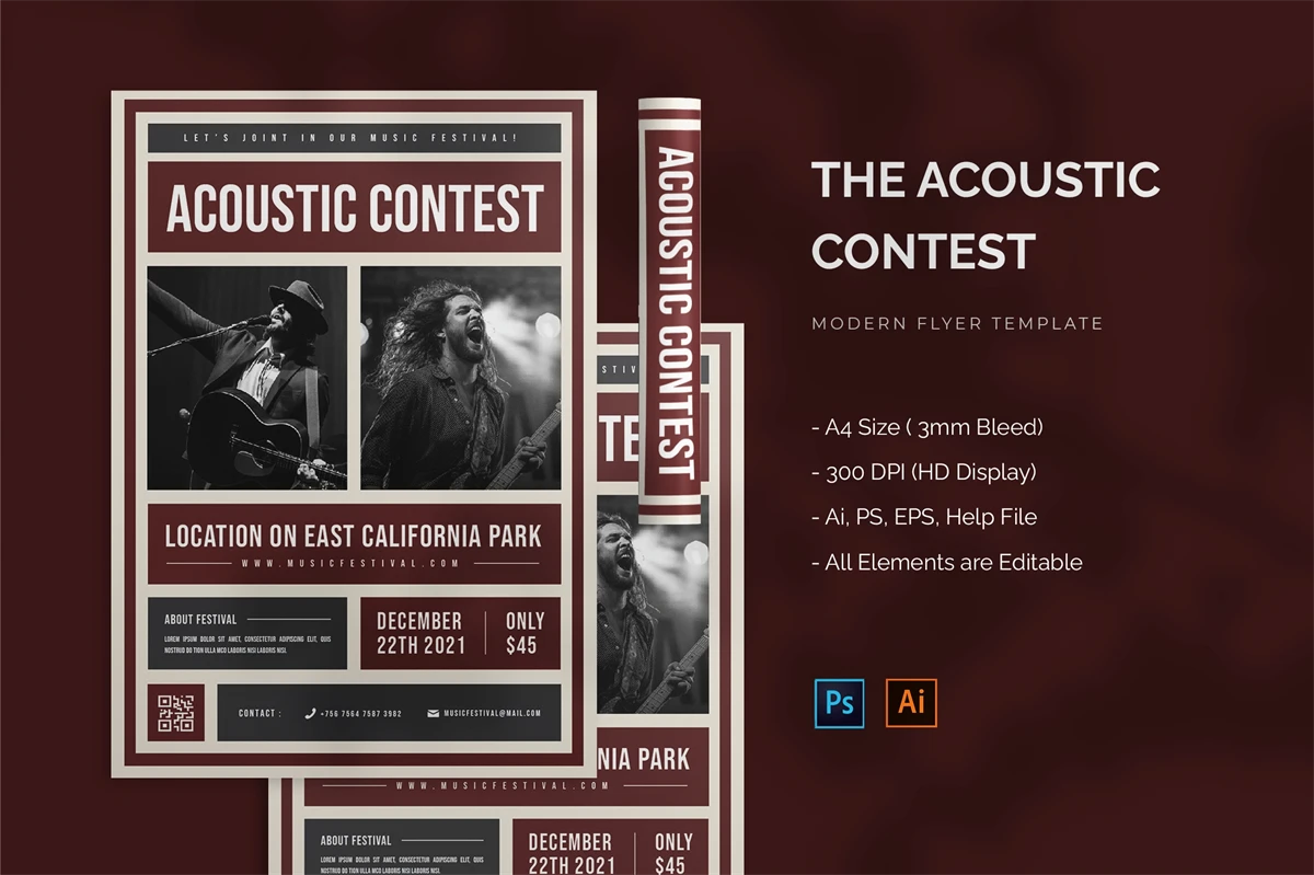 Acoustic Contest - Flyer. This Flyer template is designed for your company's business needs. very clean and elegant, and also easily edited and adjusted to your liking