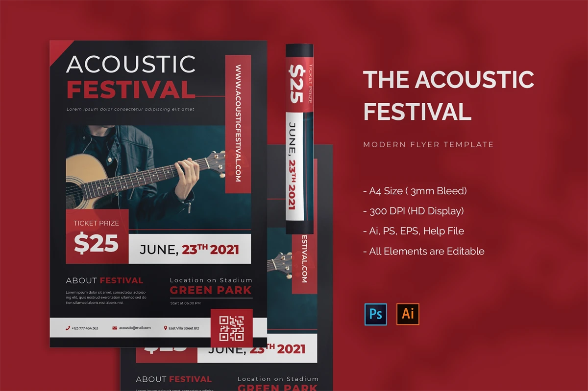 Acoustic Festival - Flyer. This Flyer template is designed for your company's business needs. very clean and elegant, and also easily edited and adjusted to your liking