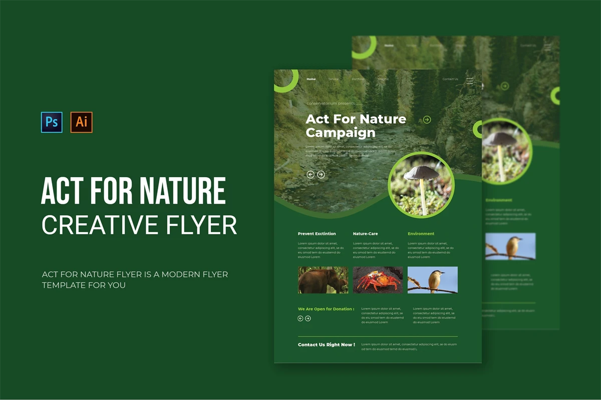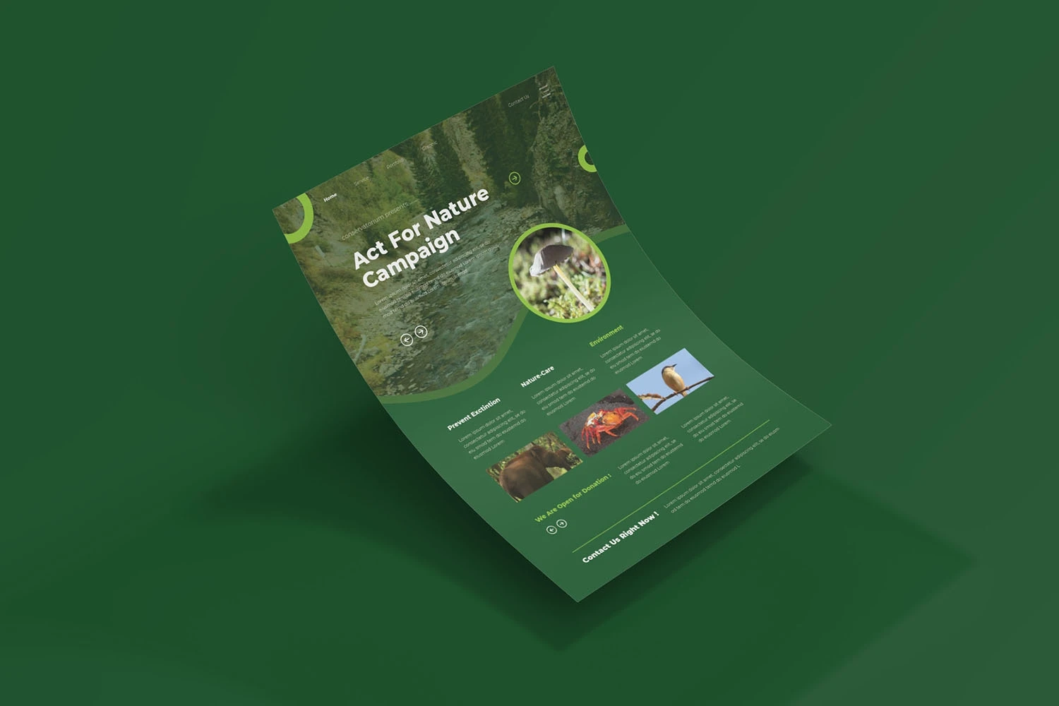 Act For Nature - Flyer. This Flyer template is designed for your company's business needs. very clean and elegant, and also easily edited and adjusted to your liking