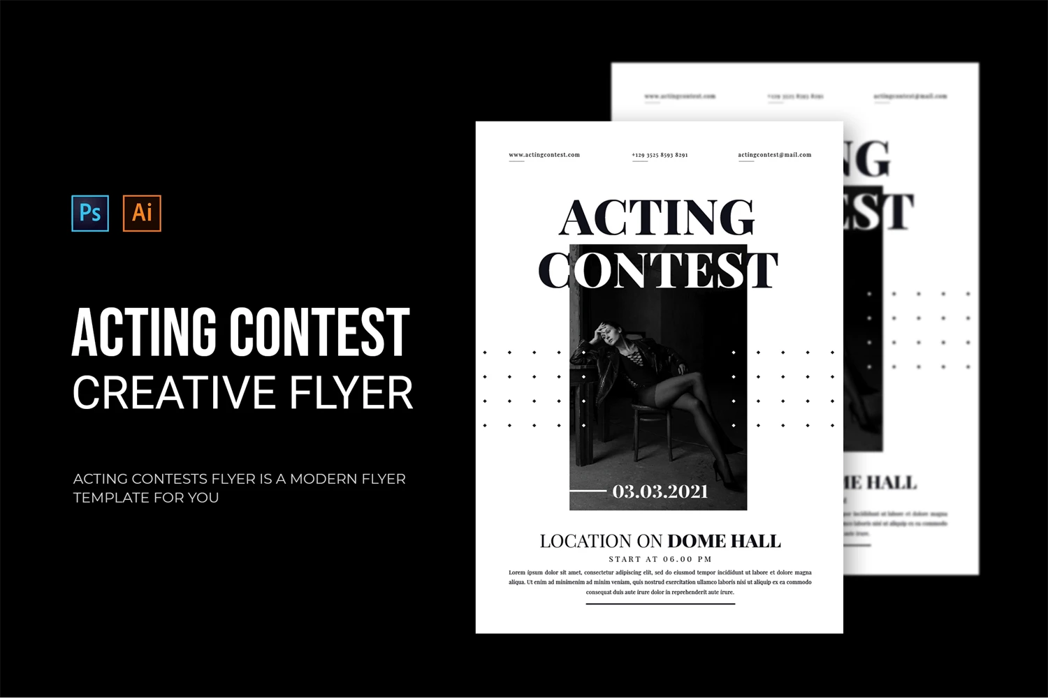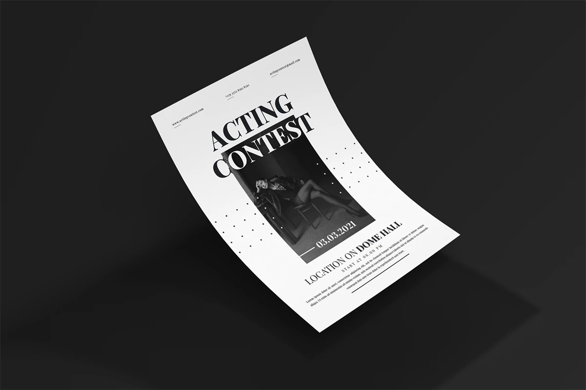 Acting Contest - Flyer. This Flyer template is designed for your company's business needs. very clean and elegant, and also easily edited and adjusted to your liking