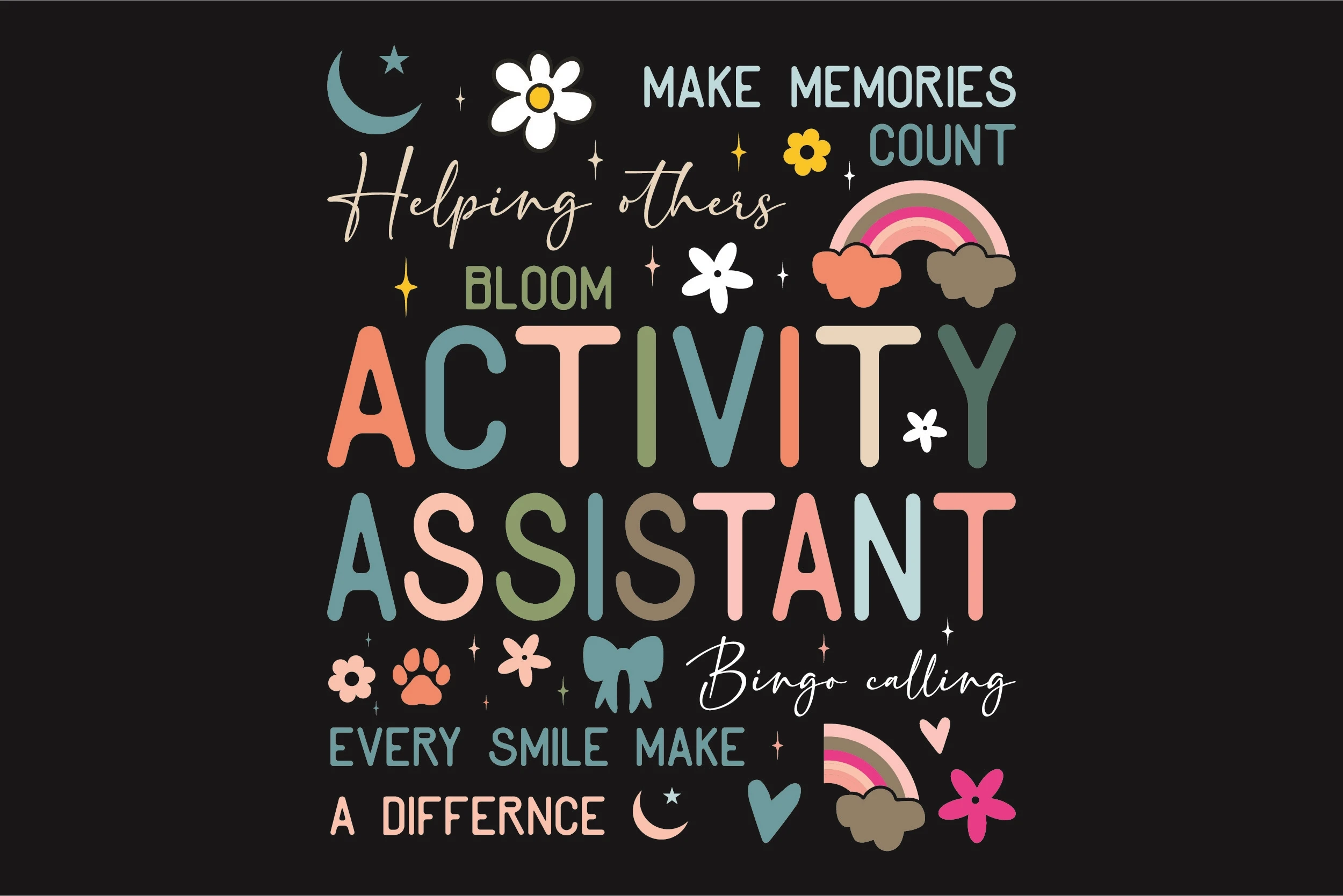 Activity Assistant, make memories count helping others bloom bing calling every smile make a difference T-Shirt Easy print.