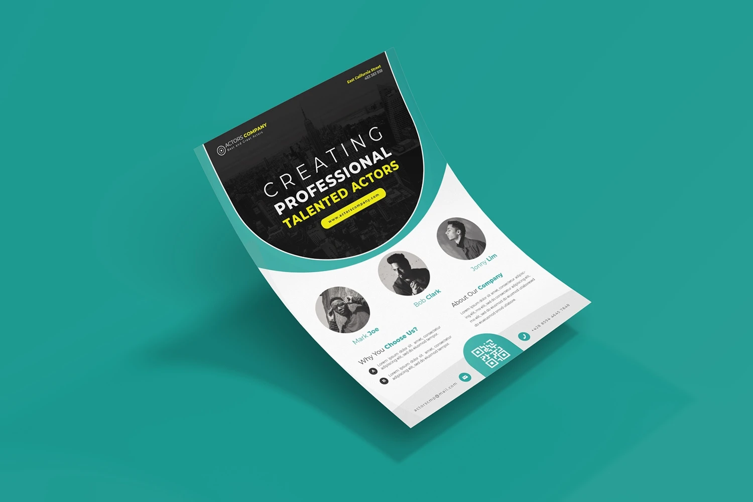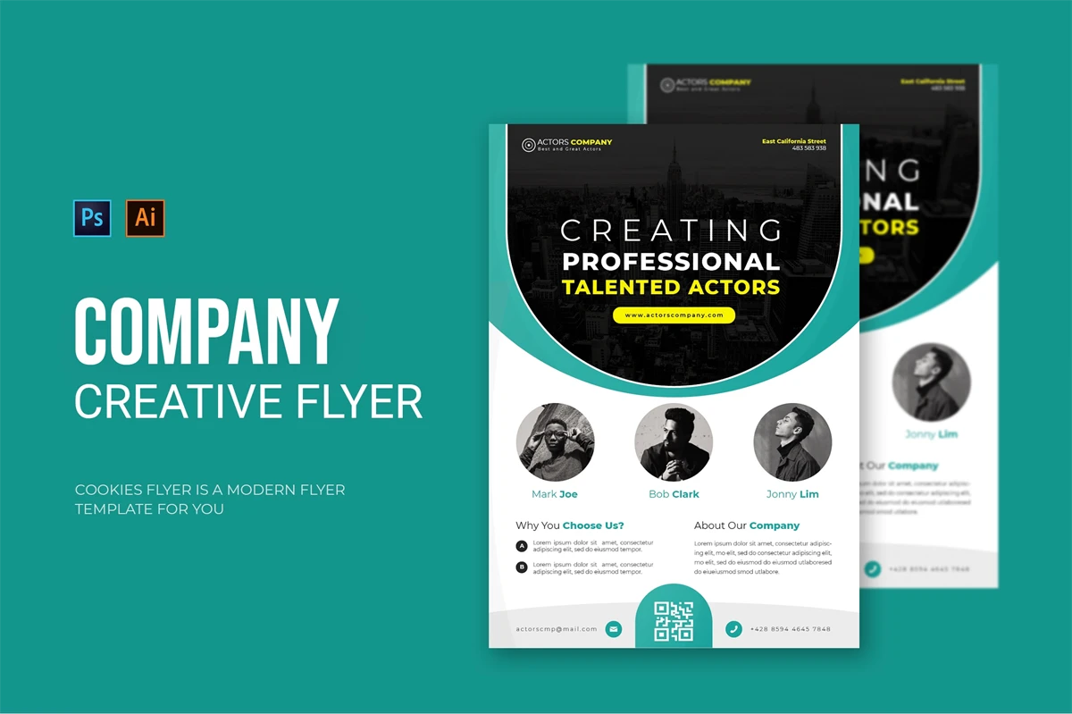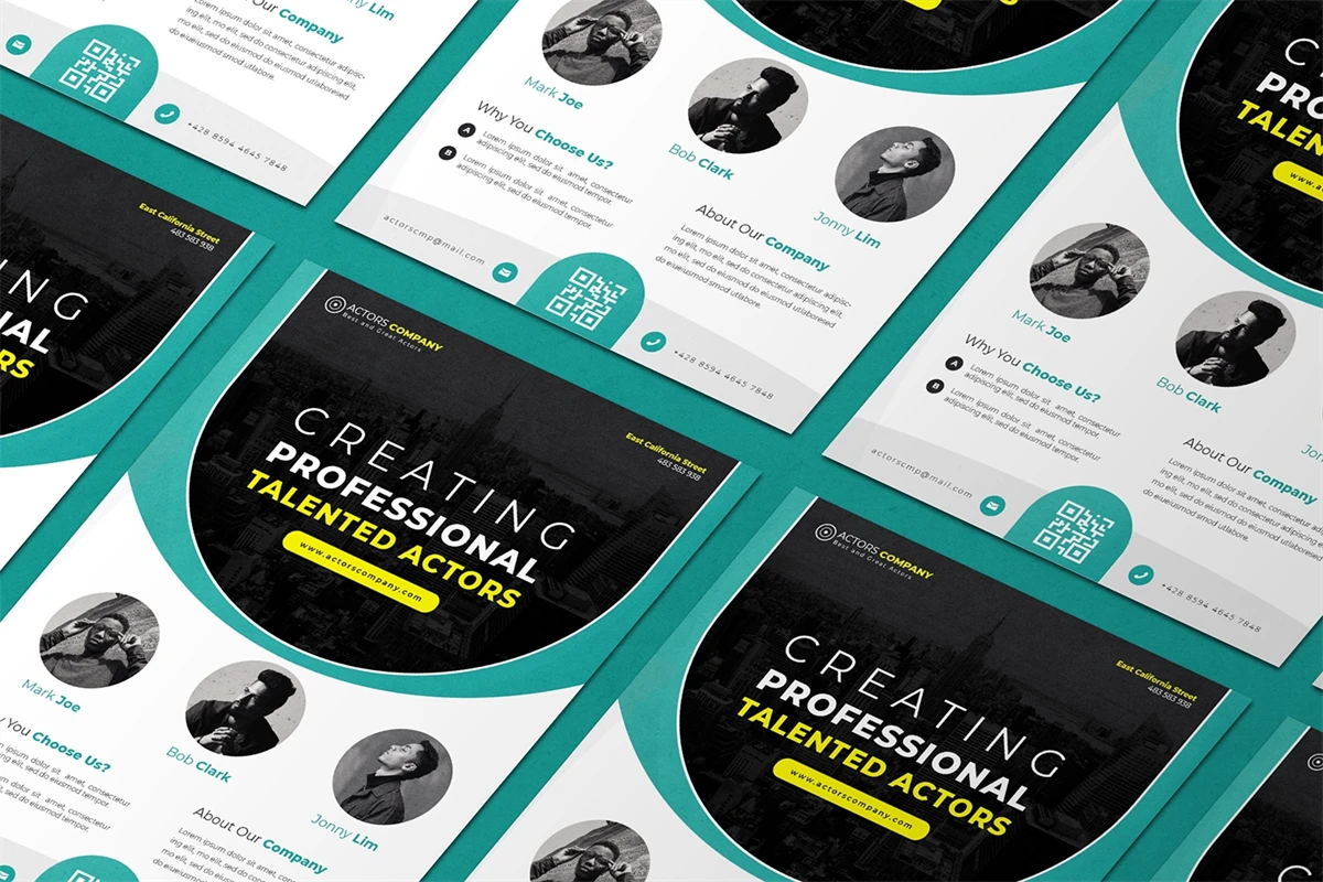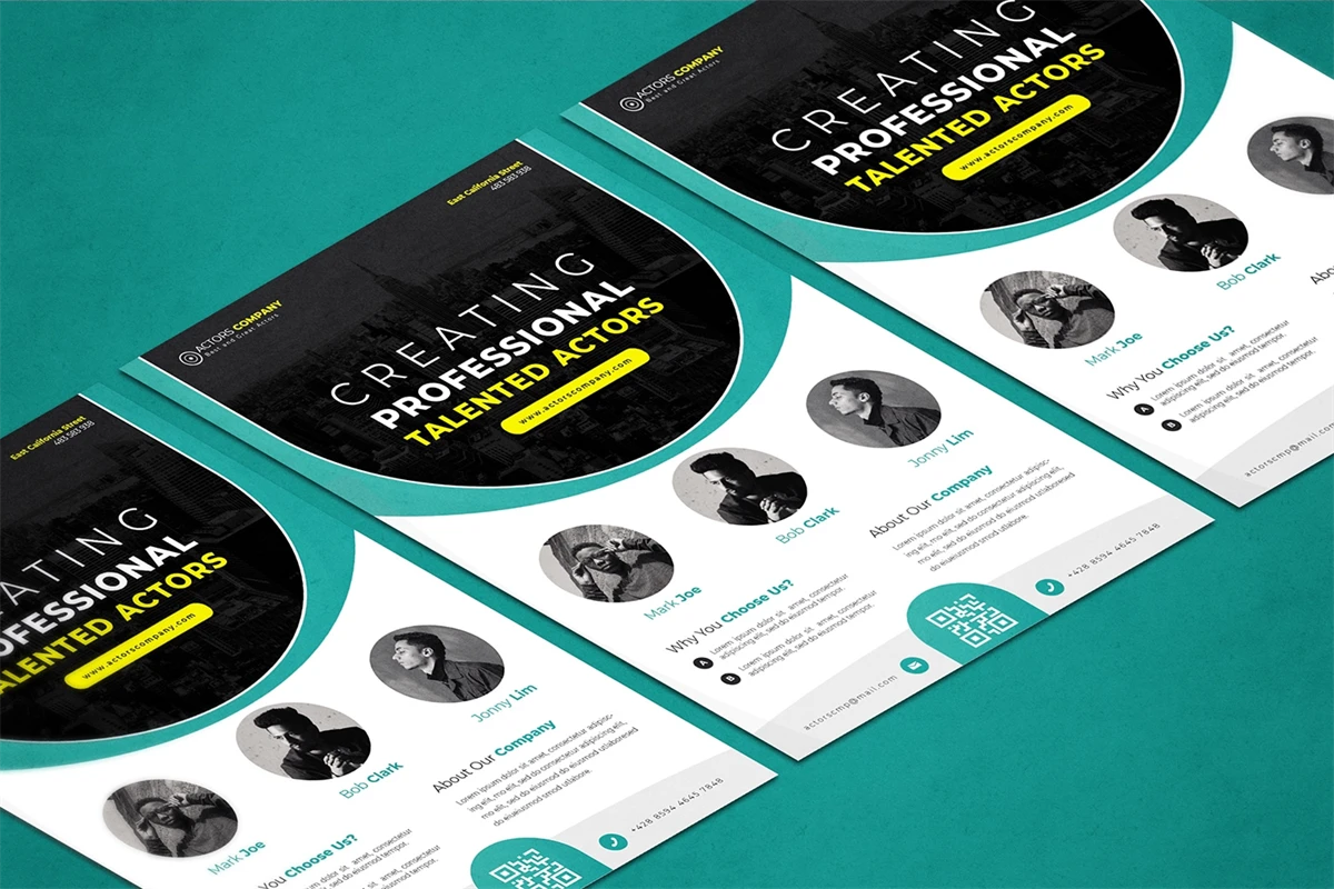 Actors Company - Flyer. This Flyer template is designed for your company's business needs. very clean and elegant, and also easily edited and adjusted to your liking