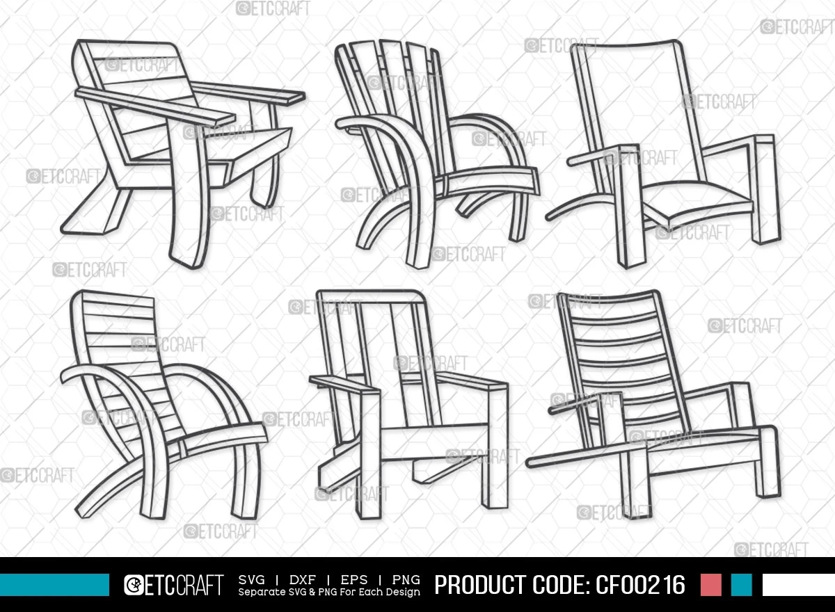 Elevate your creative projects with the Adirondack Chair Outline Beach-Muskoka Porch Lounge Chair SVG Cut File Bundle. This versatile collection of chair-themed designs is a must-have for anyone seeking to infuse their creations with a touch of coastal charm.