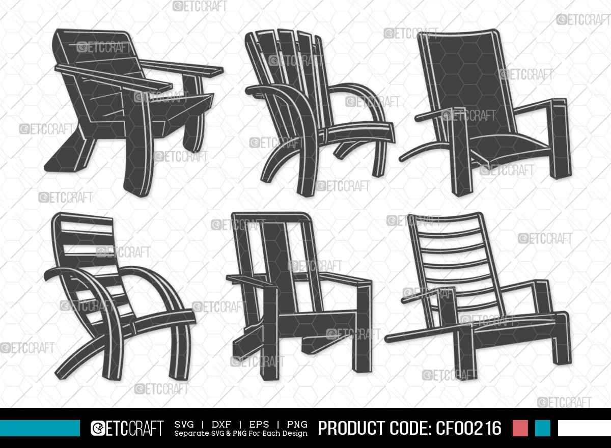Elevate your creative projects with the coastal charm of Adirondack, beach, porch, and lounge chair silhouettes. Acquire the Adirondack Chair Silhouette Beach-Muskoka Porch Lounge Chair SVG Cut File Bundle today and bring the spirit of coastal relaxation to your designs!