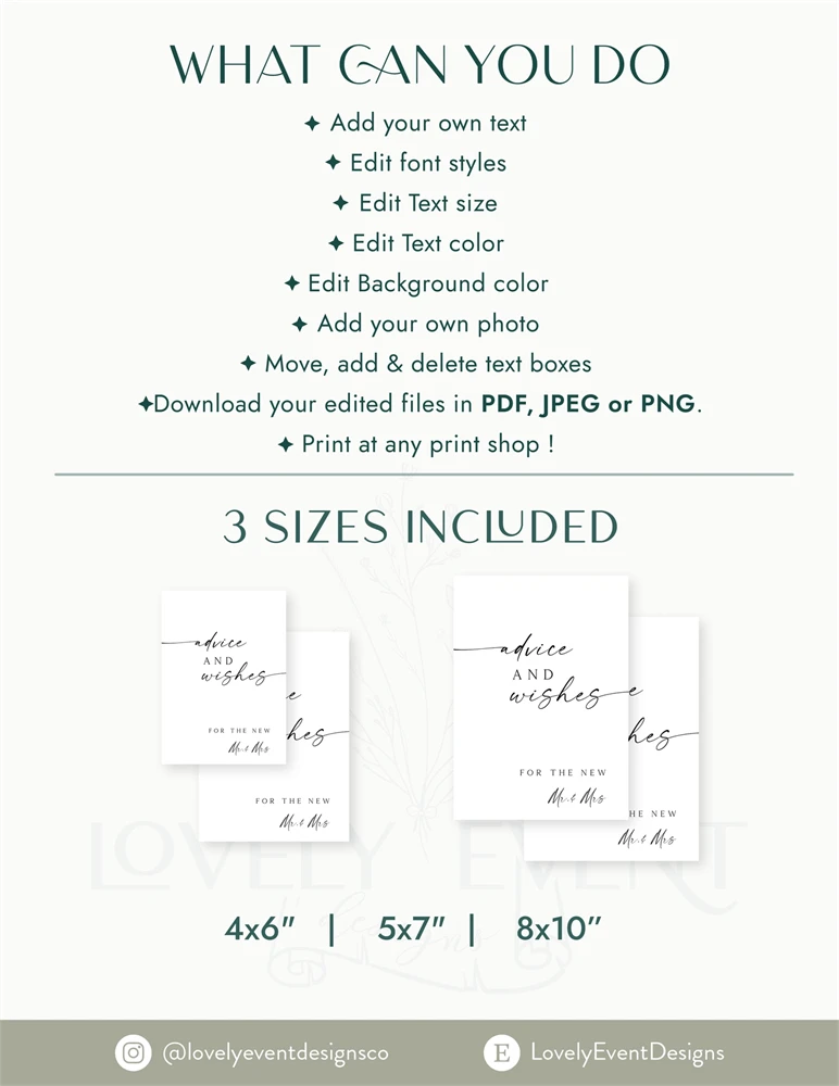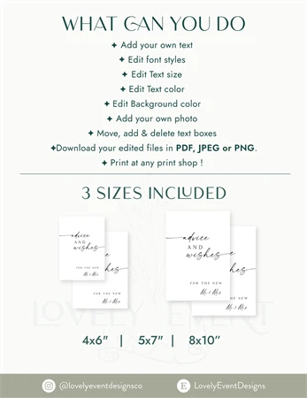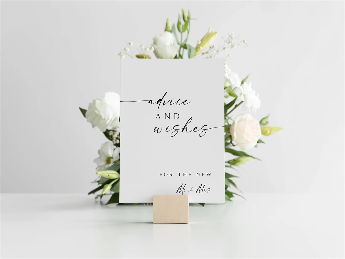 Advice and Wishes Sign Template, Minimalist Newlywed Advice