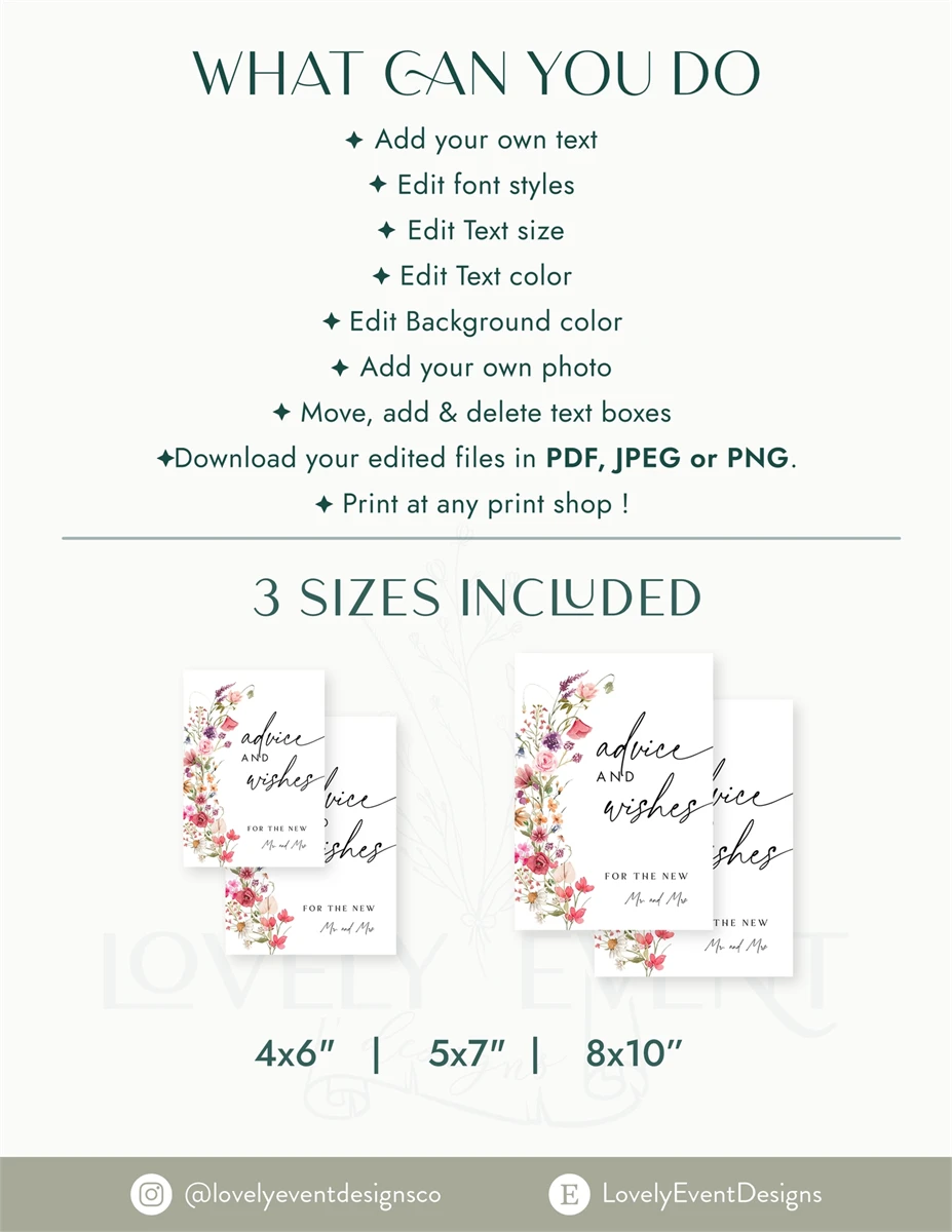 Advice and Wishes Sign Template, Minimalist Newlywed Advice