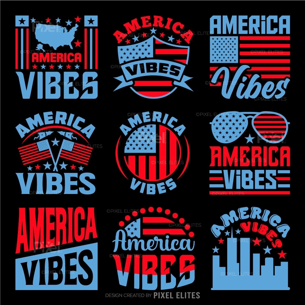 Show off your patriotic spirit with the America Vibes SVG Independence Day T-shirt Design Bundle! This vibrant collection captures the energy and pride of the 4th of July, making it perfect for creating standout Independence Day apparel and crafts.