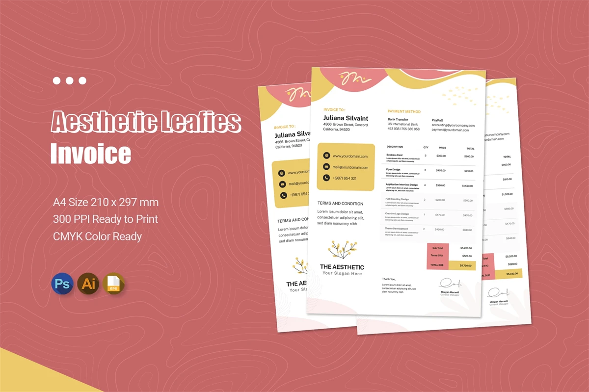 Use our invoices to make your bookkeeping easier and to impress your clients with an invoice display that has a modern, elegant design and strong typography. This invoice template is easy to use and customizable, making it perfect for any medium.