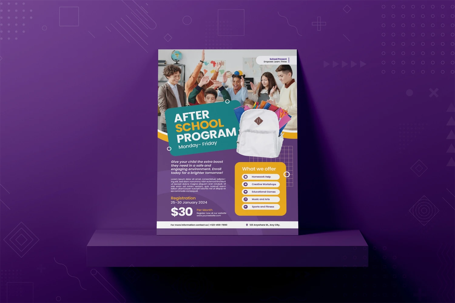 Here we provide our stylish flyer layout, created to help you grab attention with minimal effort. Seize the spotlight, make an impression, and go down in history.
