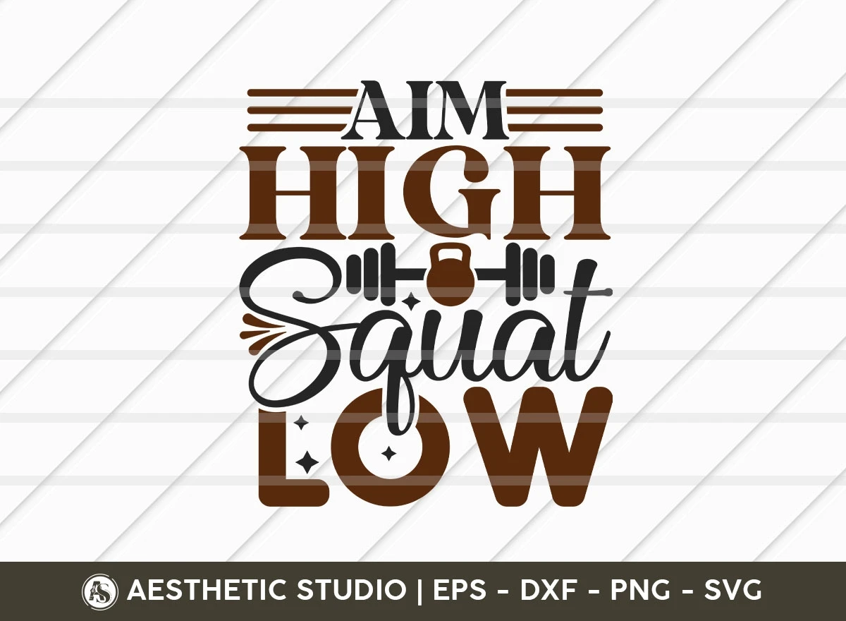 Stay inspired and maintain proper form during squats with our "Aim High Squat Low" SVG design. Download it today and create gym apparel and accessories that encourage excellence in your workouts and inspire others to set ambitious goals.