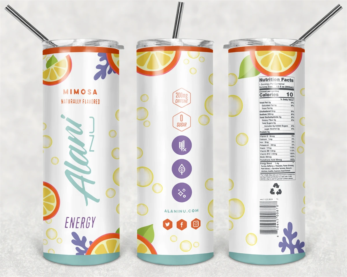 Alani Mimosa Energy Drink Tumbler Png, 20oz & 30oz Skinny