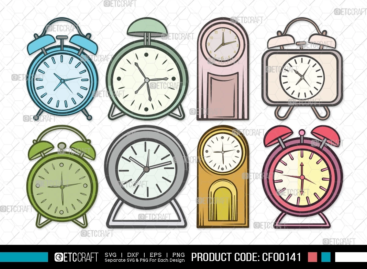 Wake up to creativity with our Alarm Clock Clipart Morning Time Clock SVG Cut File Bundle. This bundle features a collection of delightful alarm clock designs, perfect for adding a touch of charm and functionality to your crafting projects. Compatible with various design software and cutting machines, this SVG bundle makes crafting a breeze.