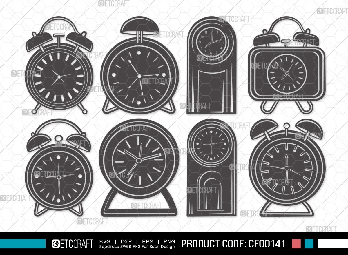Discover our Alarm Clock Silhouette Morning Time Clock SVG Cut File Bundle – a collection of captivating clock silhouettes designed to elevate your crafting experience. Infuse your projects with the charm of time and elegance with this versatile bundle. Compatible with a range of design software and cutting machines, this SVG bundle simplifies crafting and allows you to create eye-catching designs effortlessly.