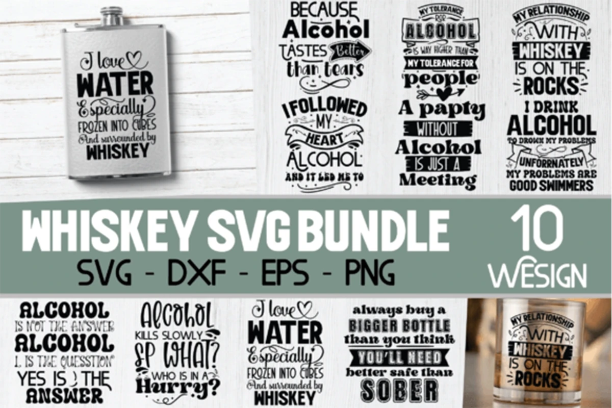 Alcohol SVG Bundle, Funny Flask Sayings, Whiskey Quotes