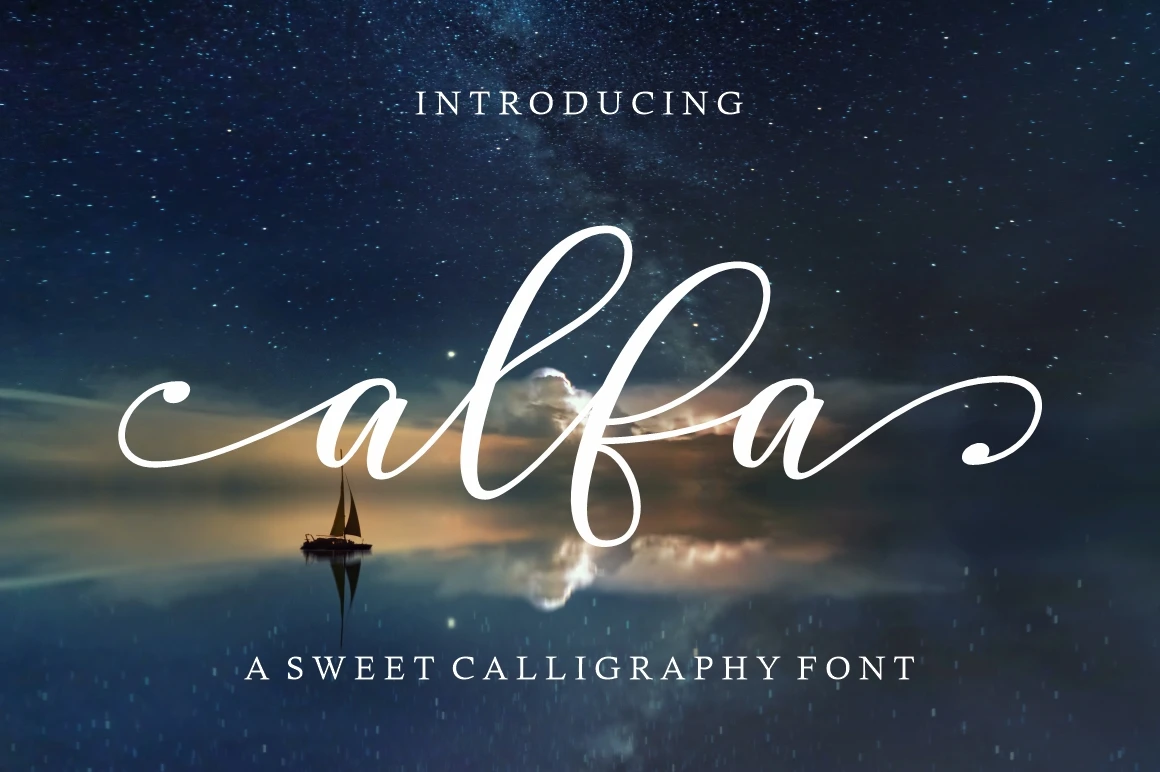Alfa Scrip is a modern calligraphy font in a contemporary handwriting style. This font is perfect for branding, wedding invites, magazines, mugs, business cards, quotes, posters, and more.