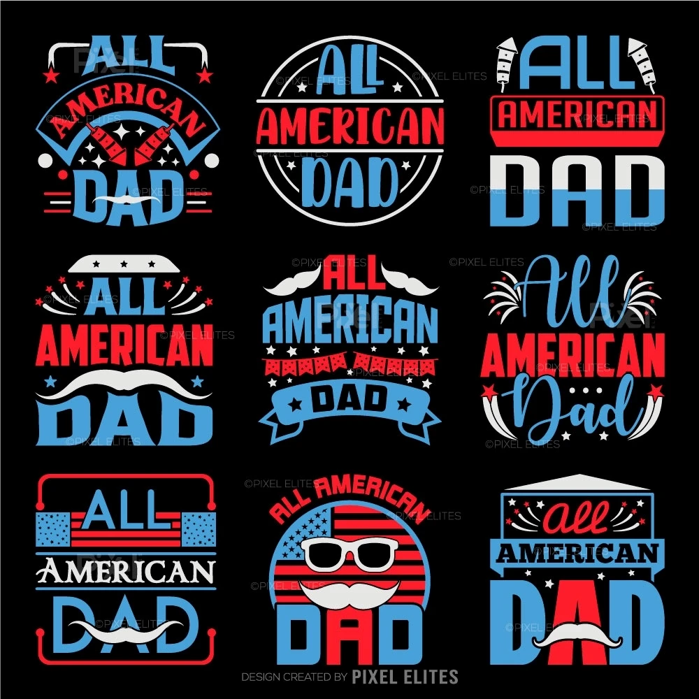# All American Dad SVG Independence Day T-Shirt Design Memorable Day Celebration