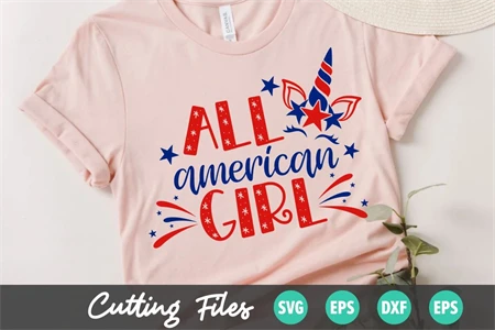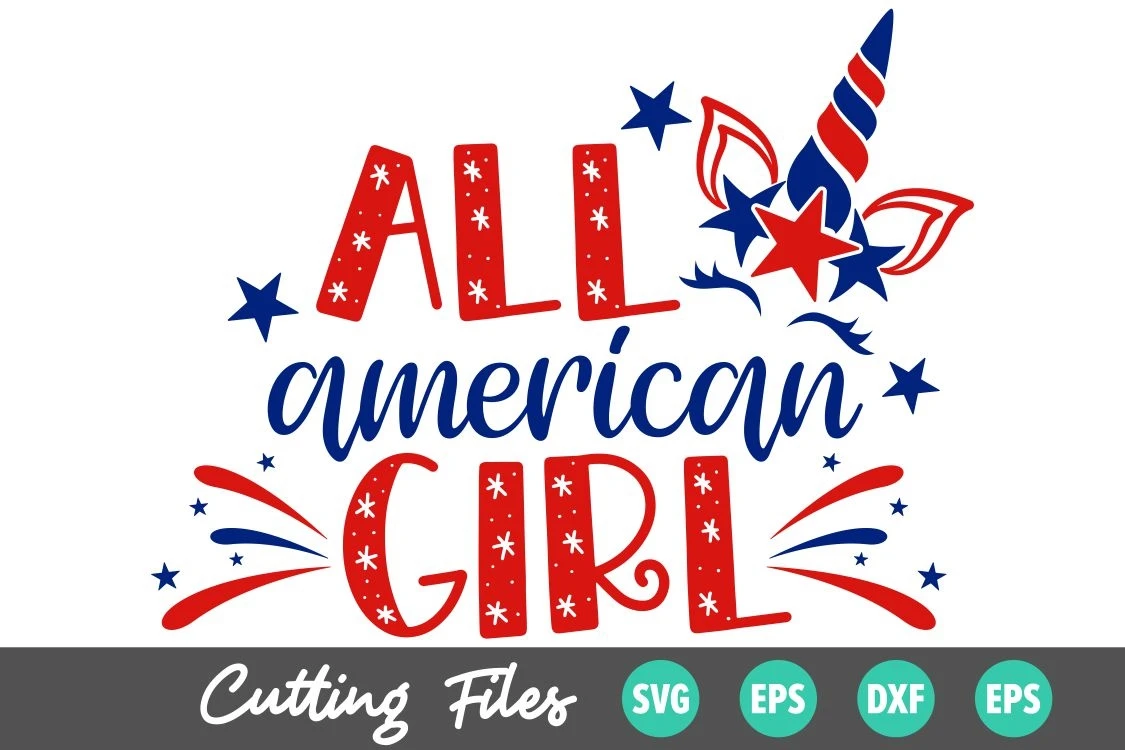 All American Girl SVG File, 4th of July Shirt Iron Transfer