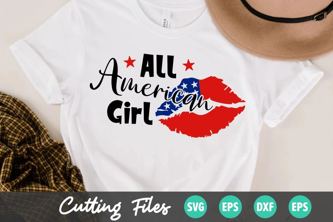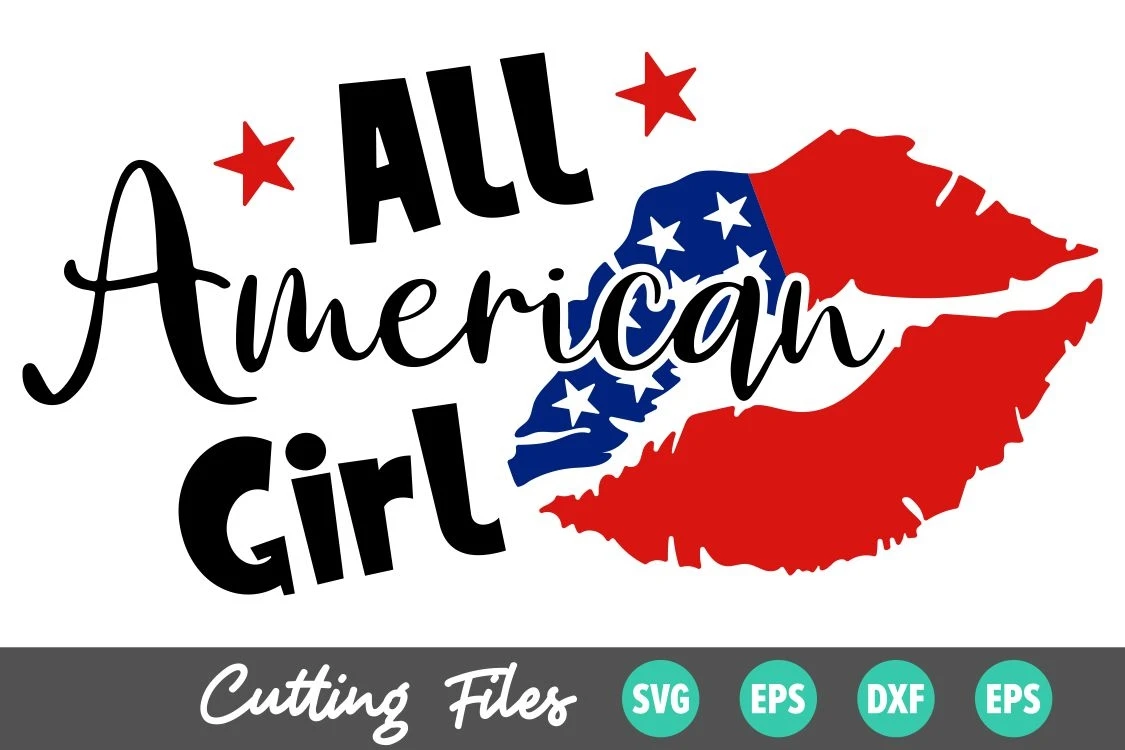 All American Girl SVG File, Lips SVG, 4th of July Shirt Iron