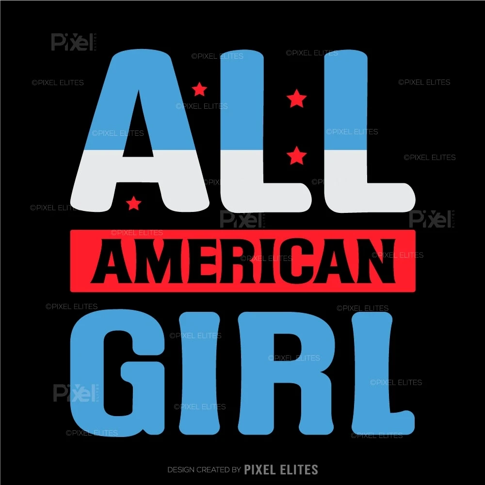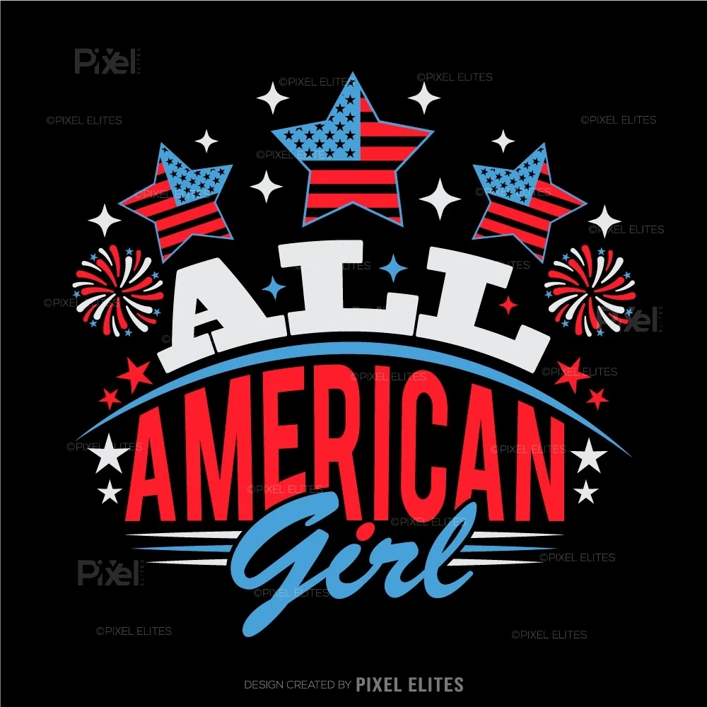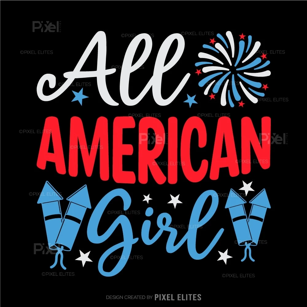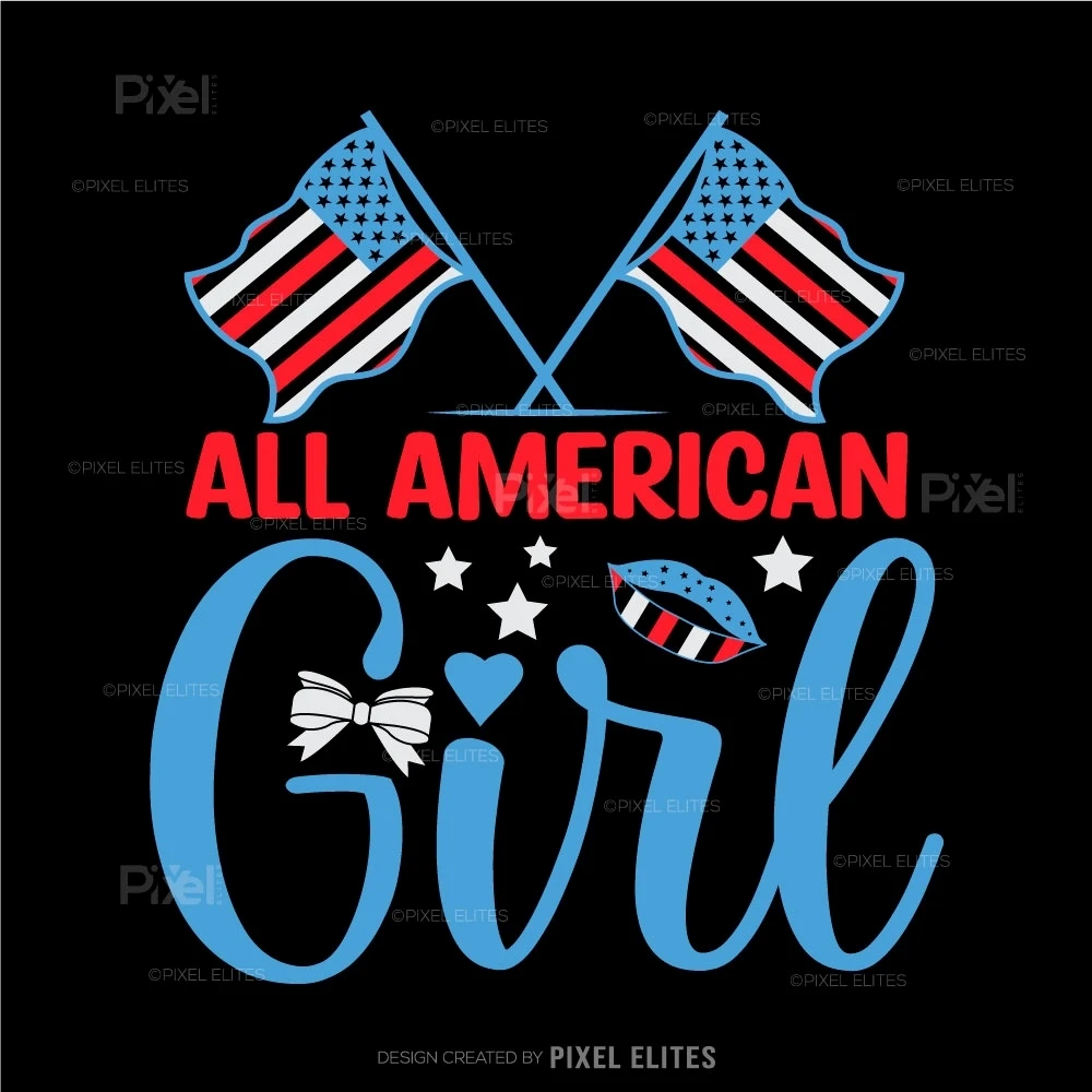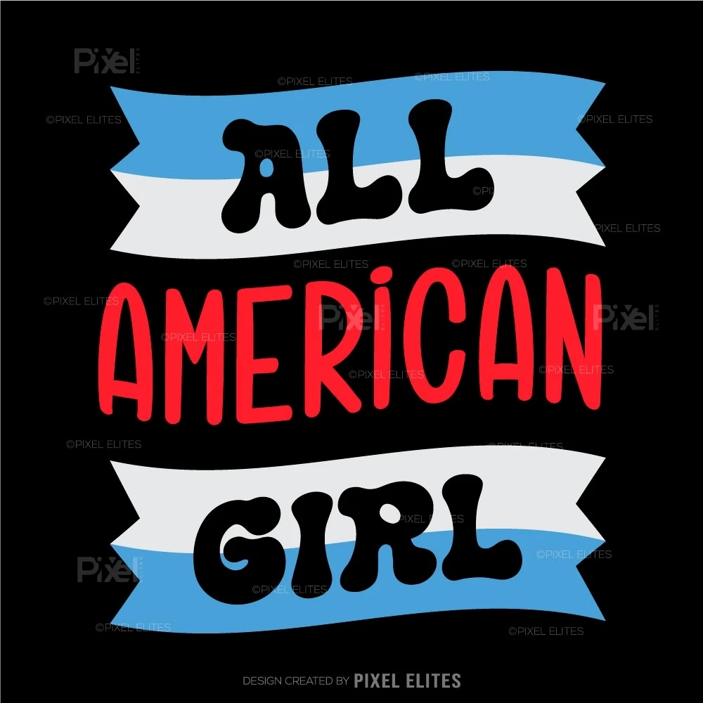 # All American Girl SVG Independence Day T-Shirt Design Memorable Day Celebration