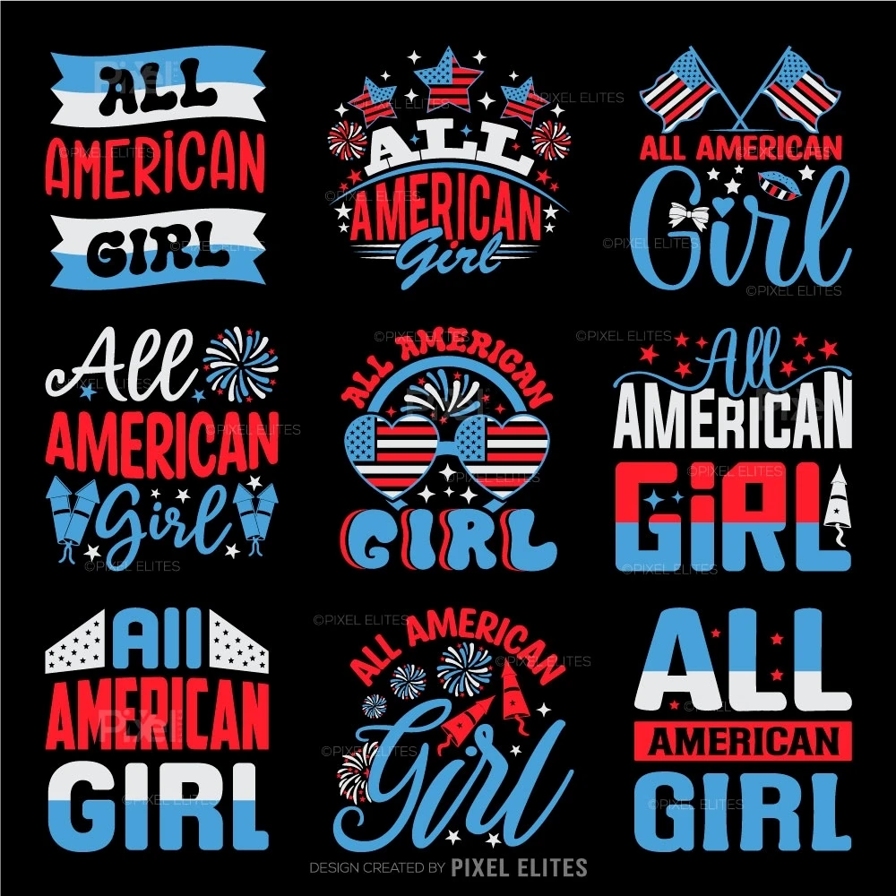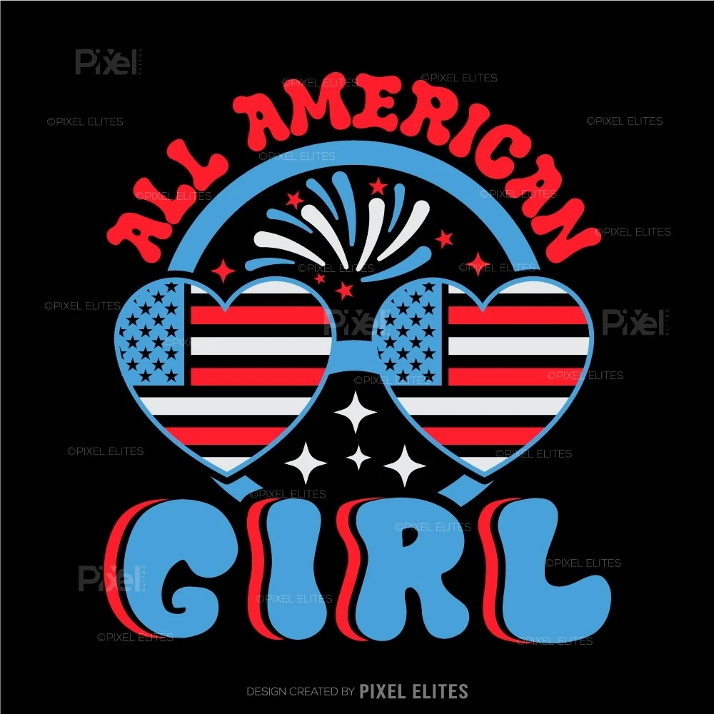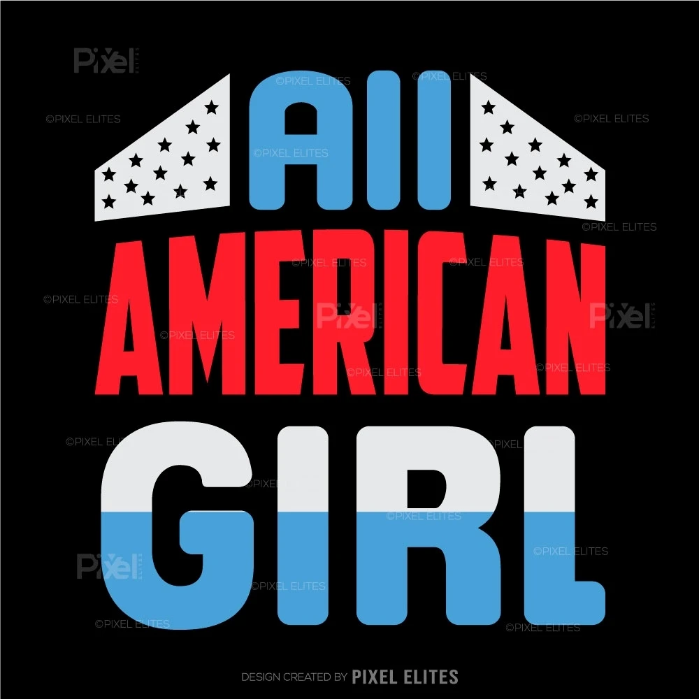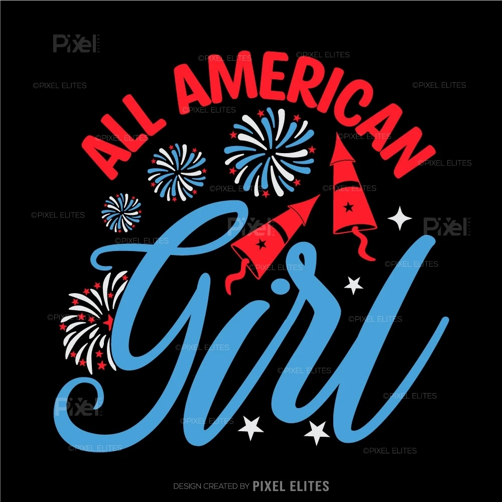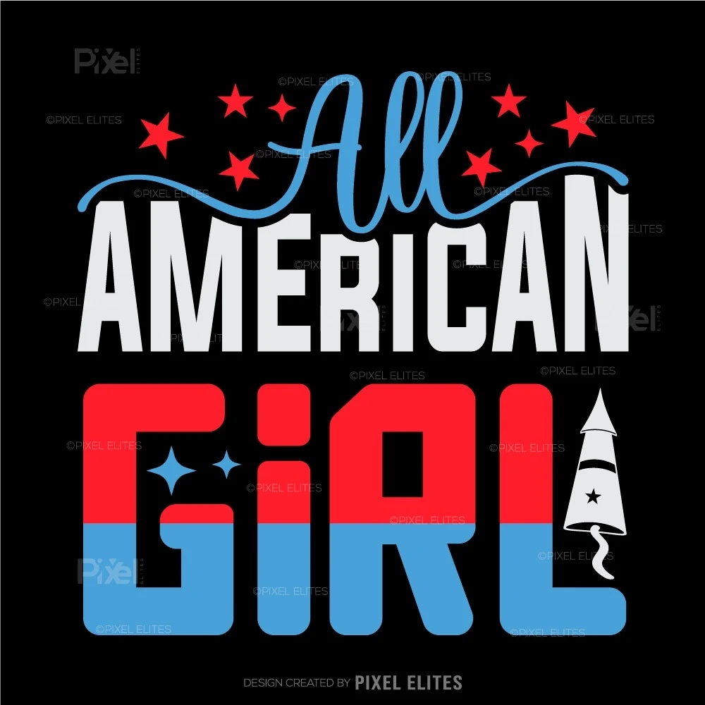 # All American Girl SVG Independence Day T-Shirt Design Memorable Day Celebration