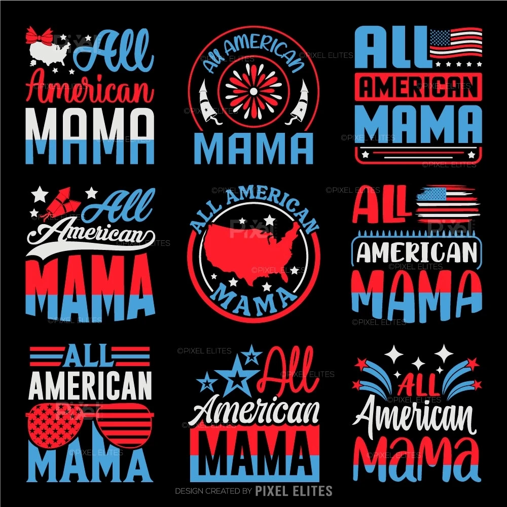 All American Mama SVG Independence Day T-shirt Design Memorable Day