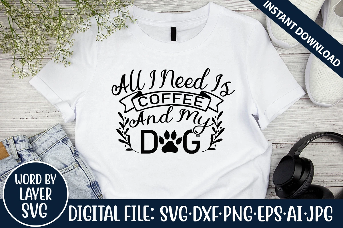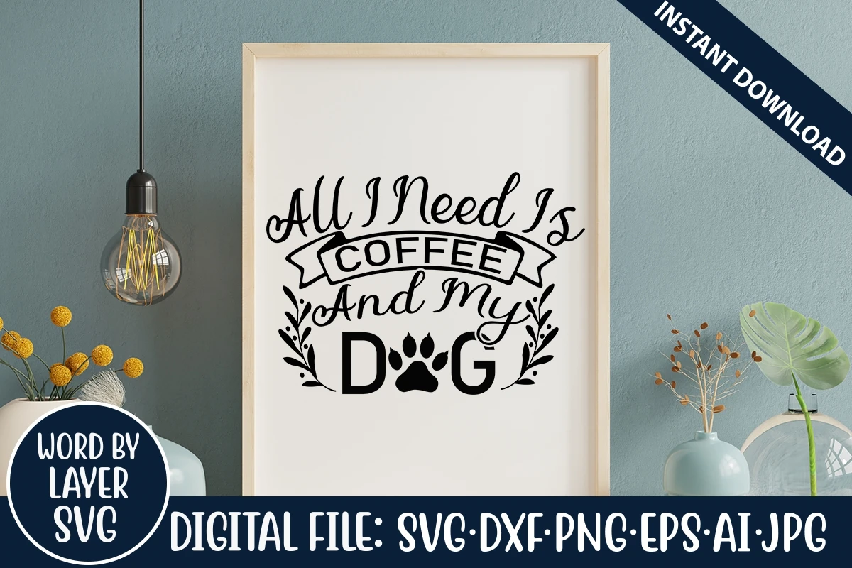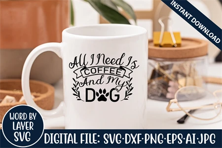 All I Need Is Coffee And My Dog SVG Design, SVG Cut File