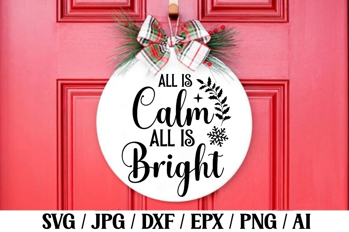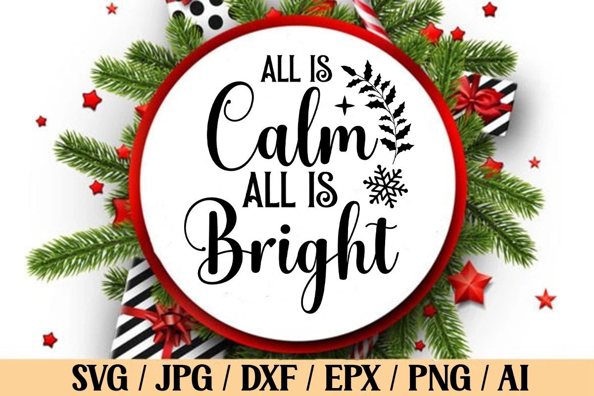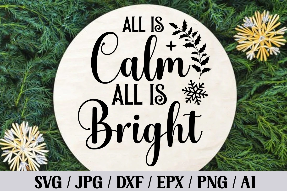All Is Calm All Is Bright Christmas Ornament Round Sign SVG