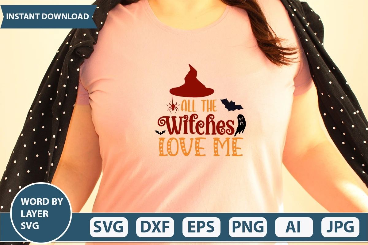 All The Witches Love Me SVG Cut file design, Halloween SVG