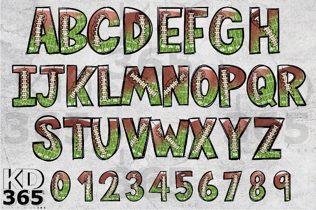 Creative with this Alphabet PNG Sublimation Design a football pattern outline doodle hand-drawn style.