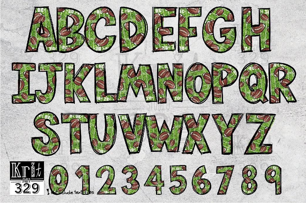 Creative with this Alphabet PNG Sublimation Design a football pattern outline doodle hand-drawn style.