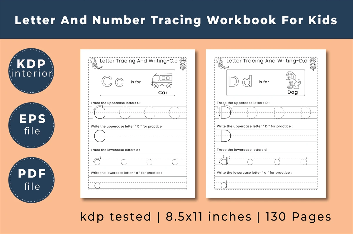 1.A fun and educational workbook designed to help kids learn to trace alphabet letters (A-Z) and numbers (0-100).