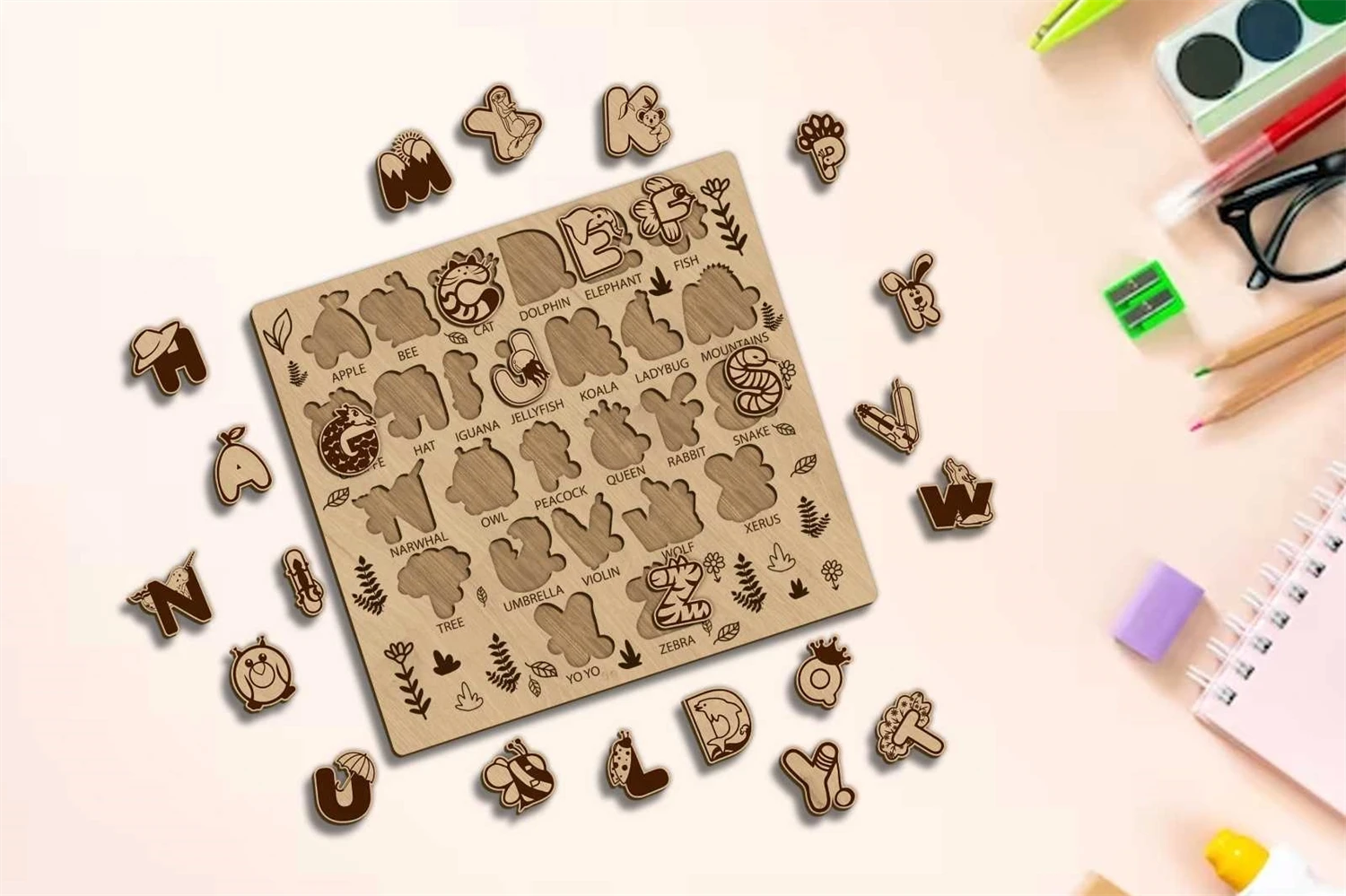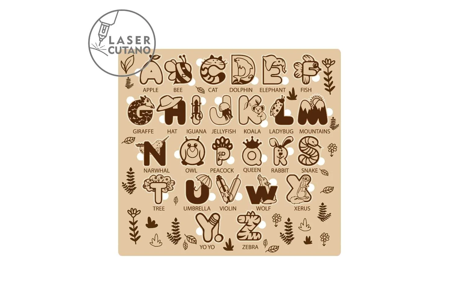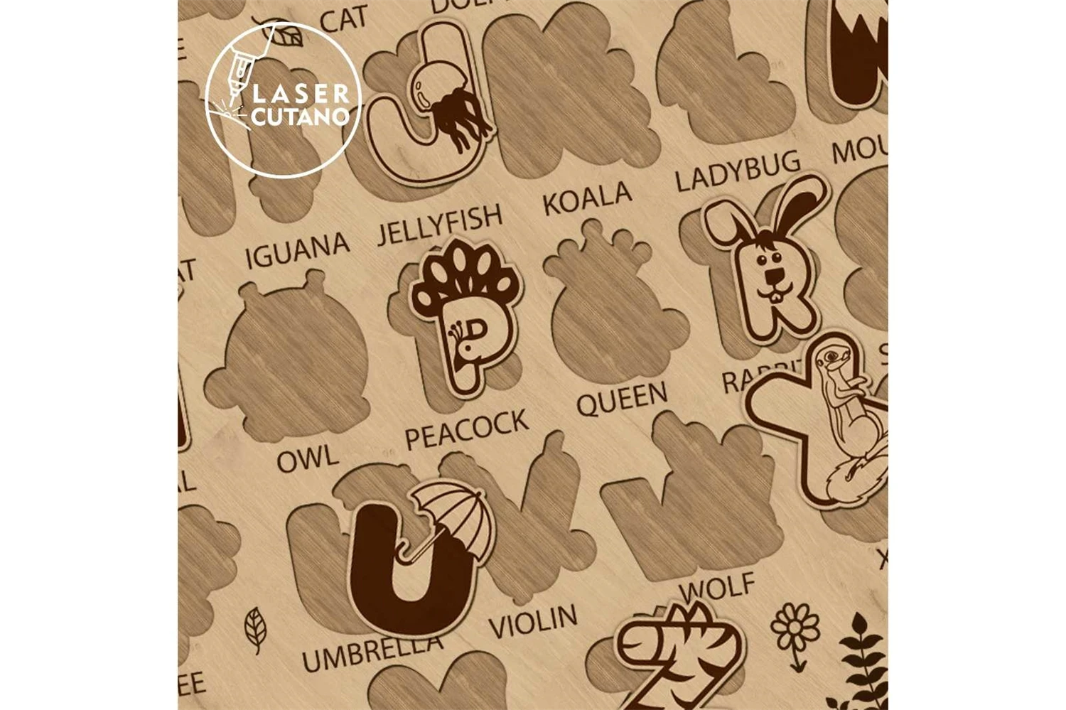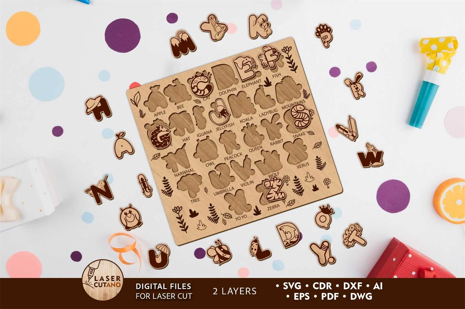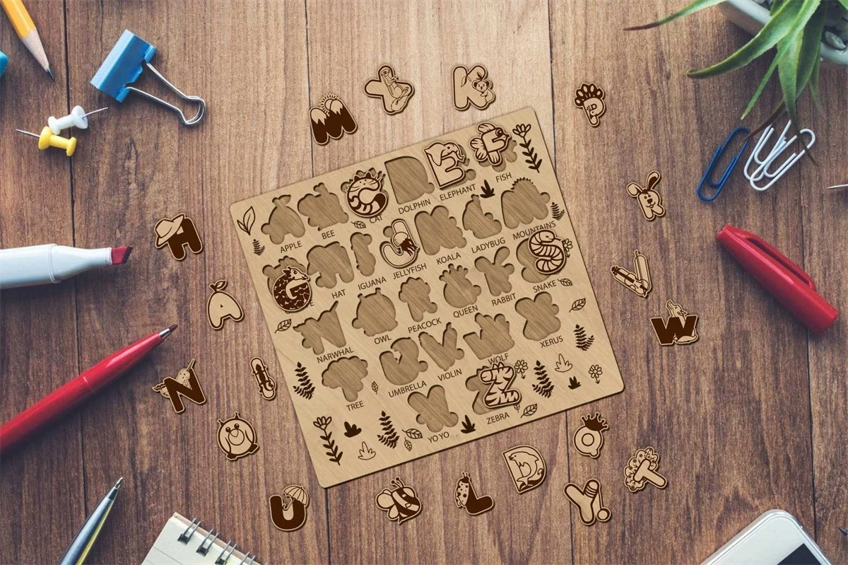 ALPHABET PUZZLE Digital multilayer layout files are specially prepared for the laser cut, CNC router machine and other cutting machines.